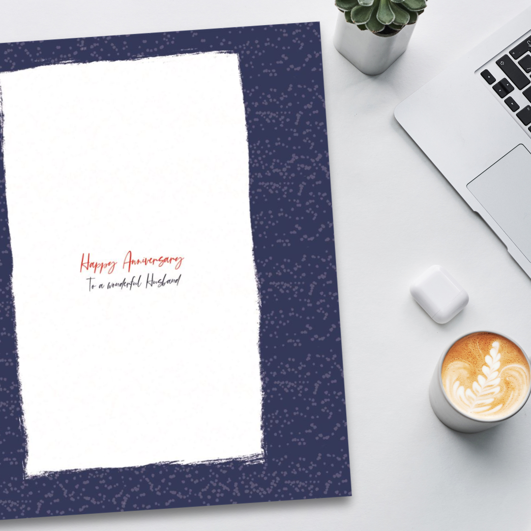 Fabulous Husband Anniversary Boxed Card with gold foil add-on elements and full colour pages. With heartfelt verse. Blue box with tissue paper to complete the look.
