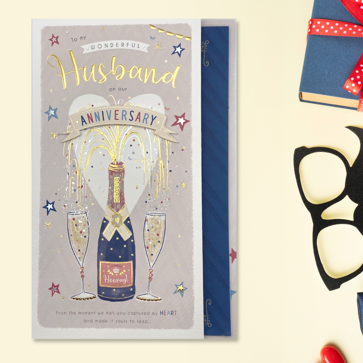 Husband Anniversary Card - Pavillion Large Bubbly & Flutes