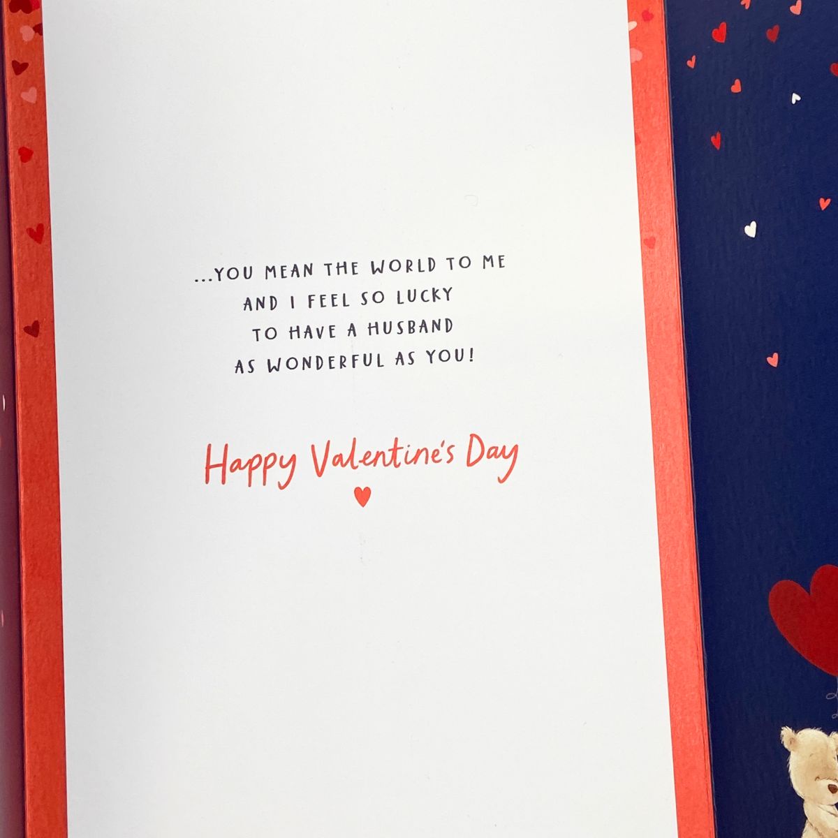 Beautiful full colour Husband large Valentine's card from the Nutmeg collection with cut out heart, embellishment and red and gold foil details. Finished with colour printed insert and co-ordinating red envelope.