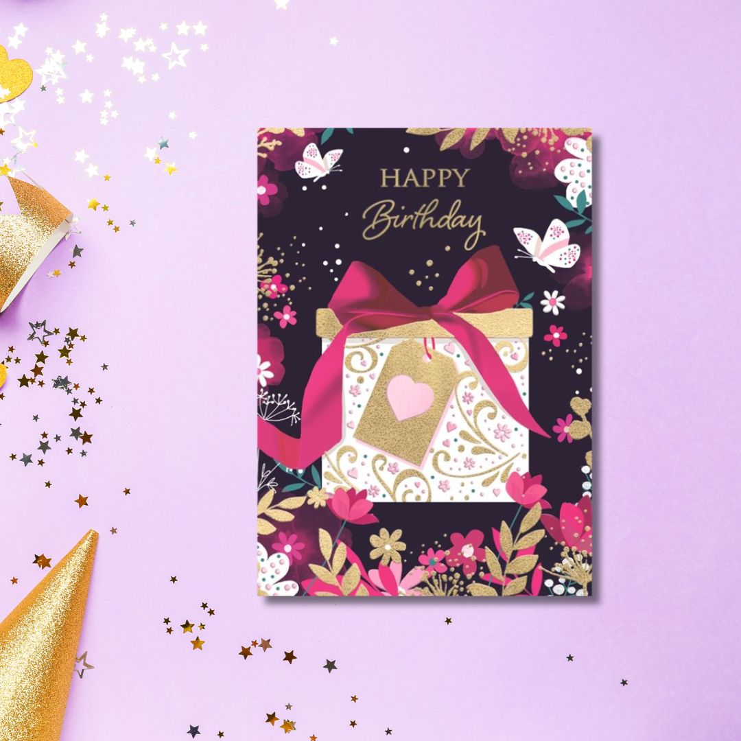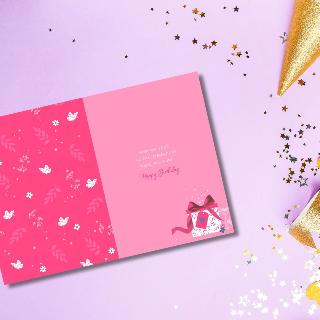 A fantastic birthday card from the Joy collection. Finished with gold foil details with colour printed inside.