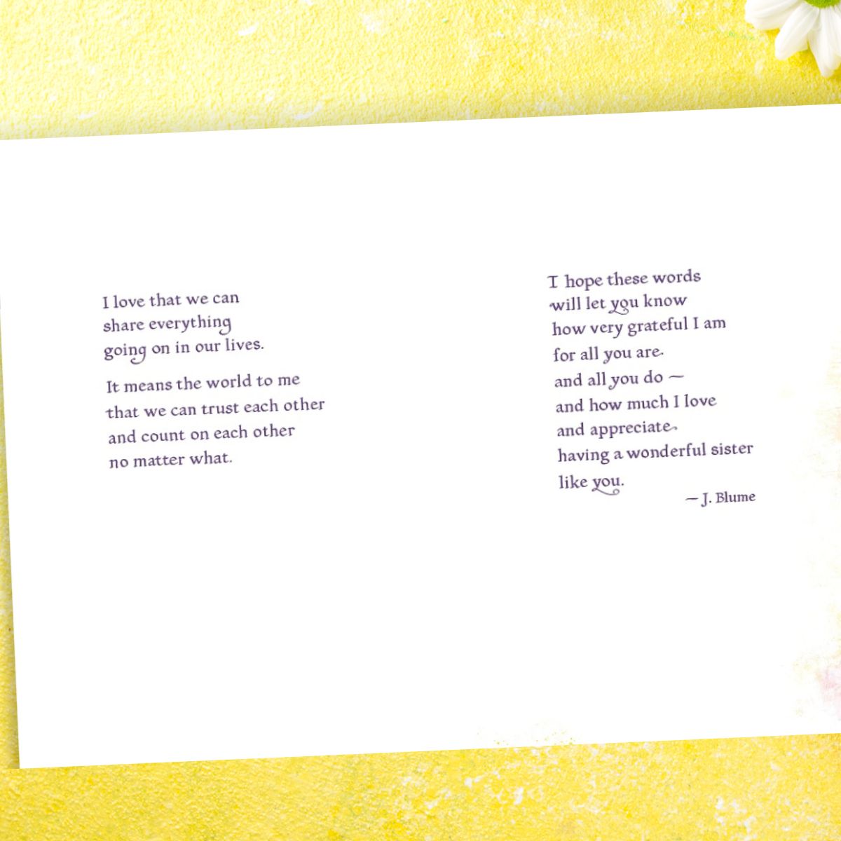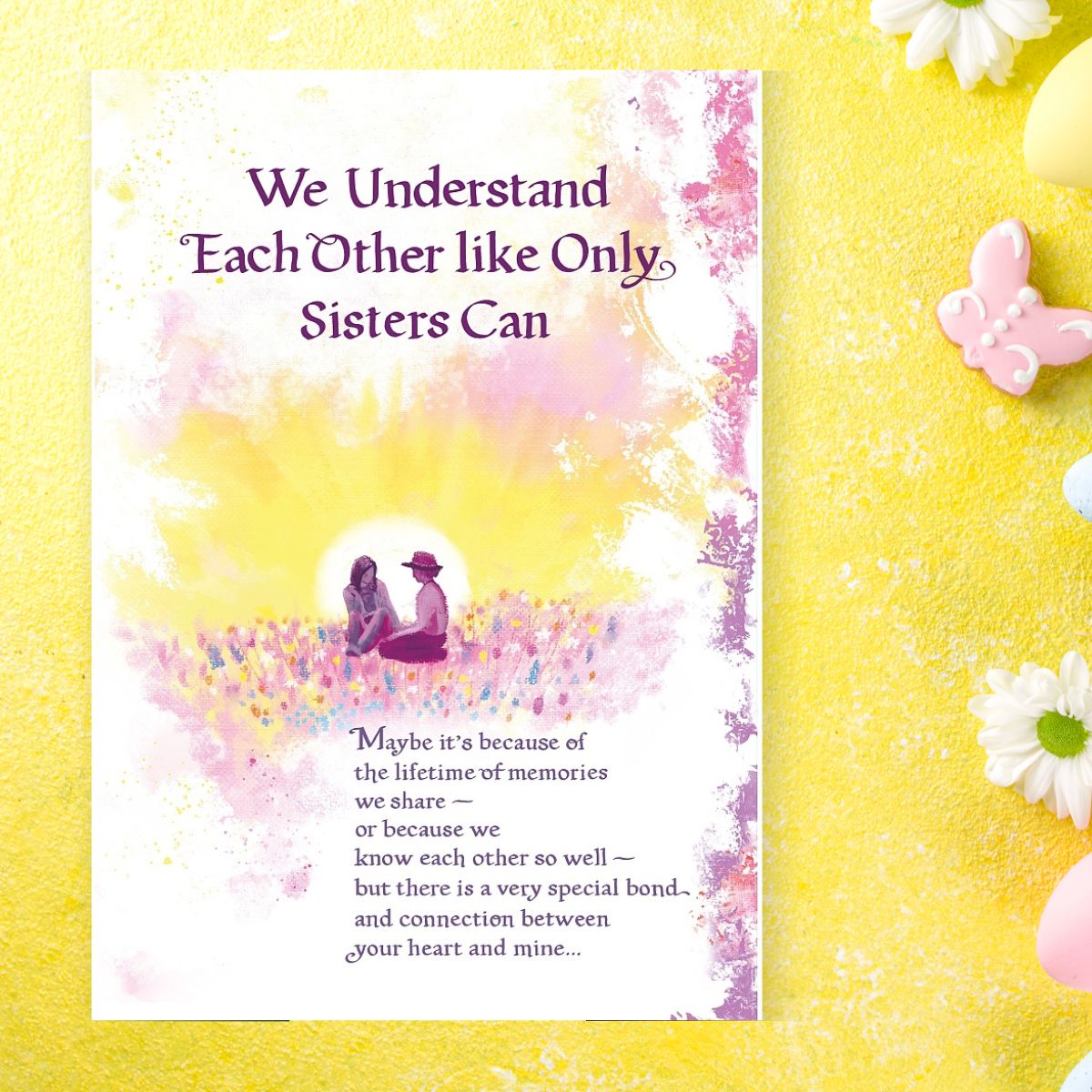 Beautiful full colour 3-Fold We Understand Each Other Like Only Sisters Can card from the Blue Mountain Arts collection with heartfelt sentiments. With die-cut edge and textured finish.