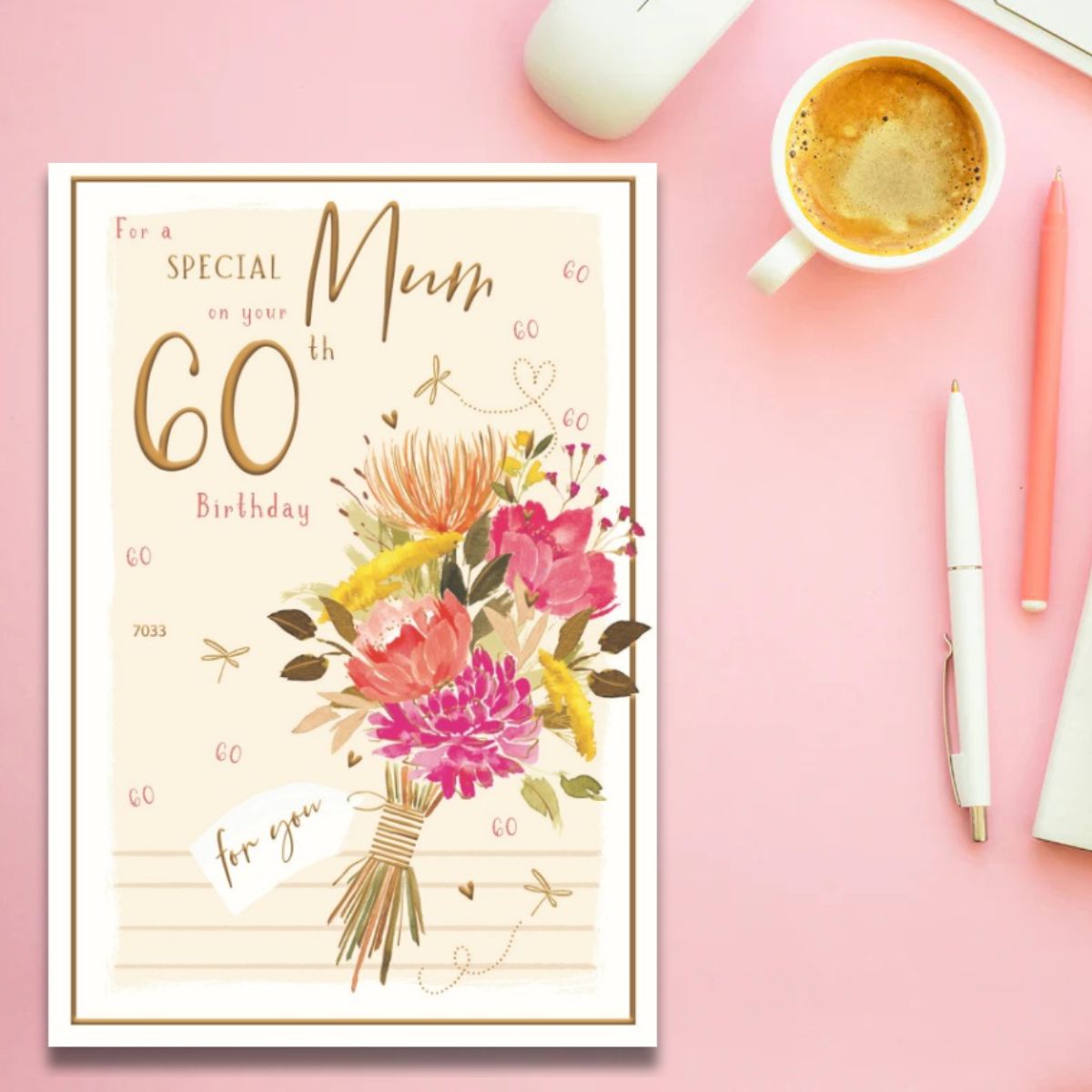 Stunning full colour Mum 60th Birthday card from the Skylight collection. Printed on textured board with full colour insert and caption in gold foiling.