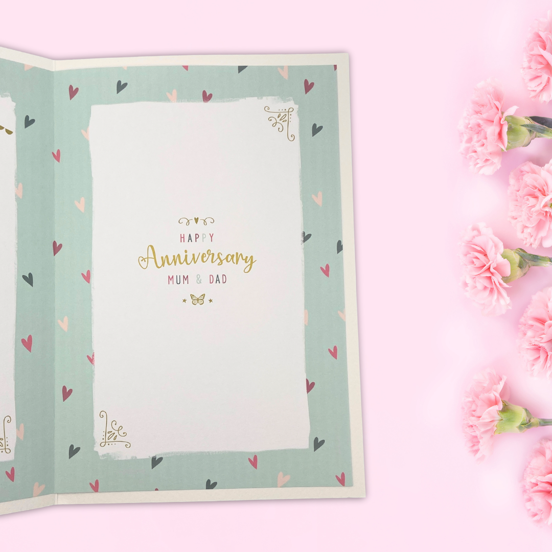Stunning full colour Mum & Dad Anniversary card complete with gold foil details and colour printed insert. The perfect way to celebrate your parents anniversary!