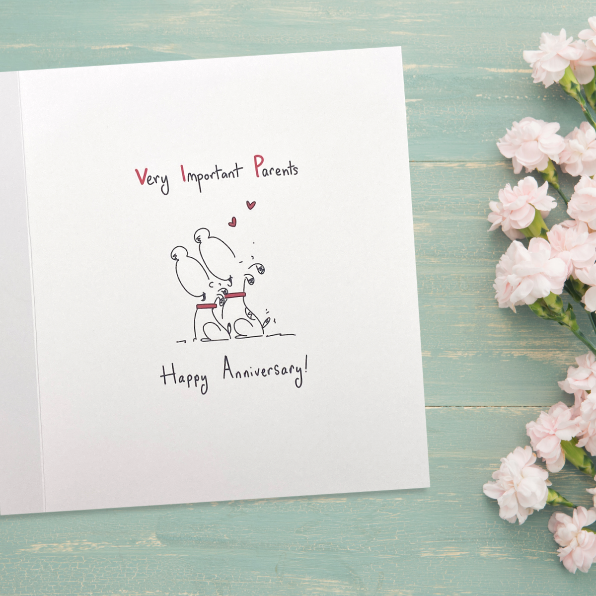 Fantastic Mum & Dad Anniversary card complete with red foiled details and colour printed inside. Celebrate your parents anniversary with this beautiful card!