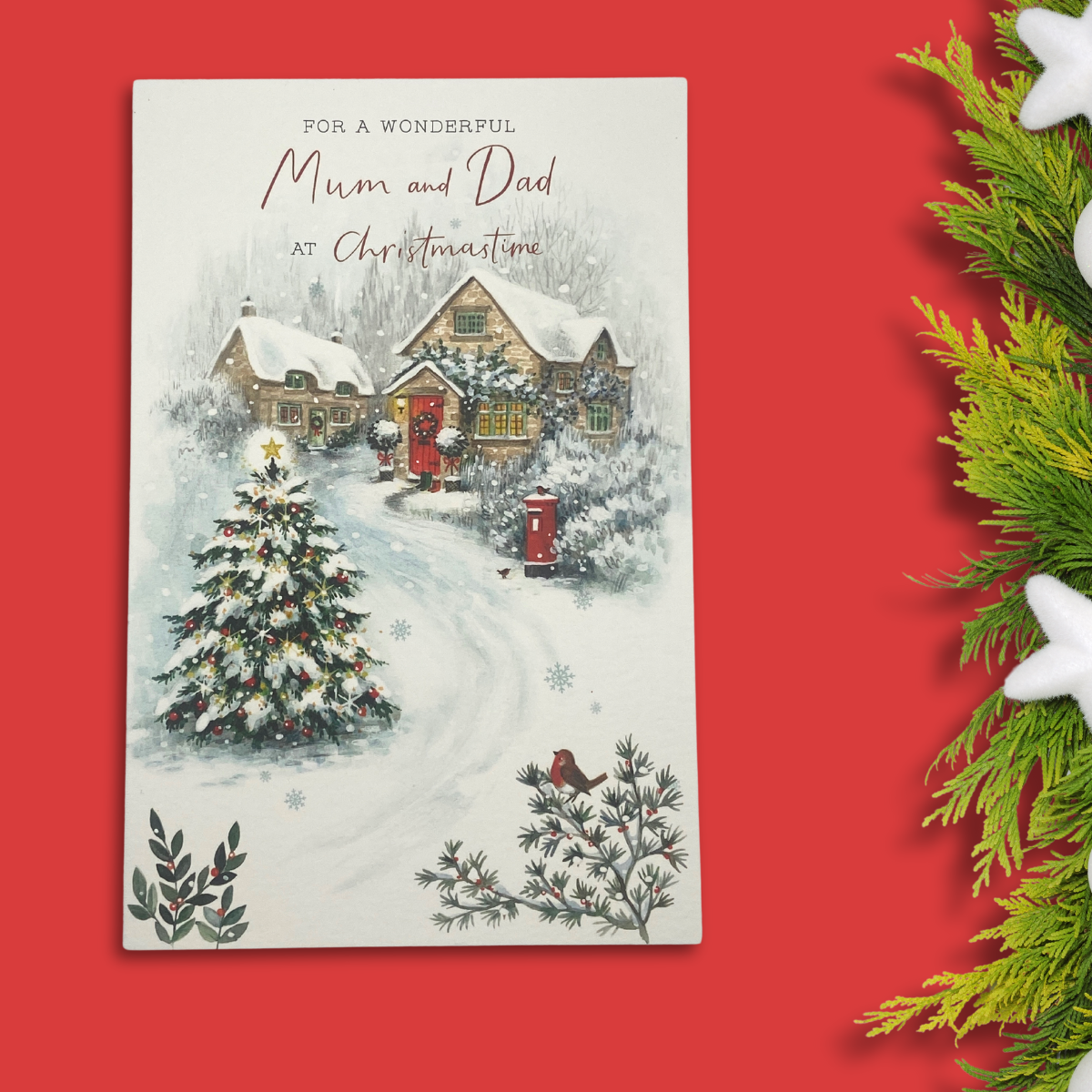 Lovely full colour Special Mum & Dad Christmas card with textured finish and colour printed inside.
