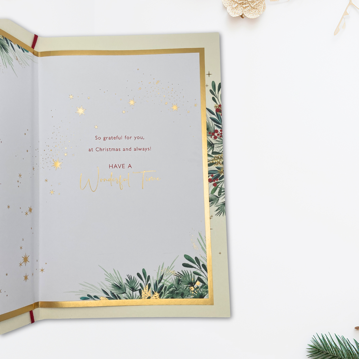 Gorgeous full colour Mum from Son large Christmas card with tied cord. Finished with gold foil accents and the prettiest colour printed insert.