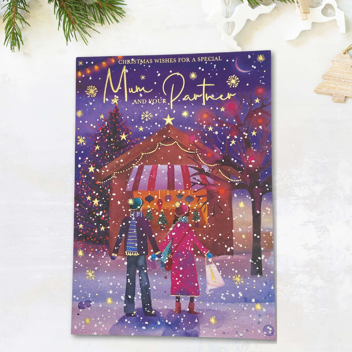 Gorgeous Christmas card for a Mum & Partner, with gold foil details and colour printed insert.