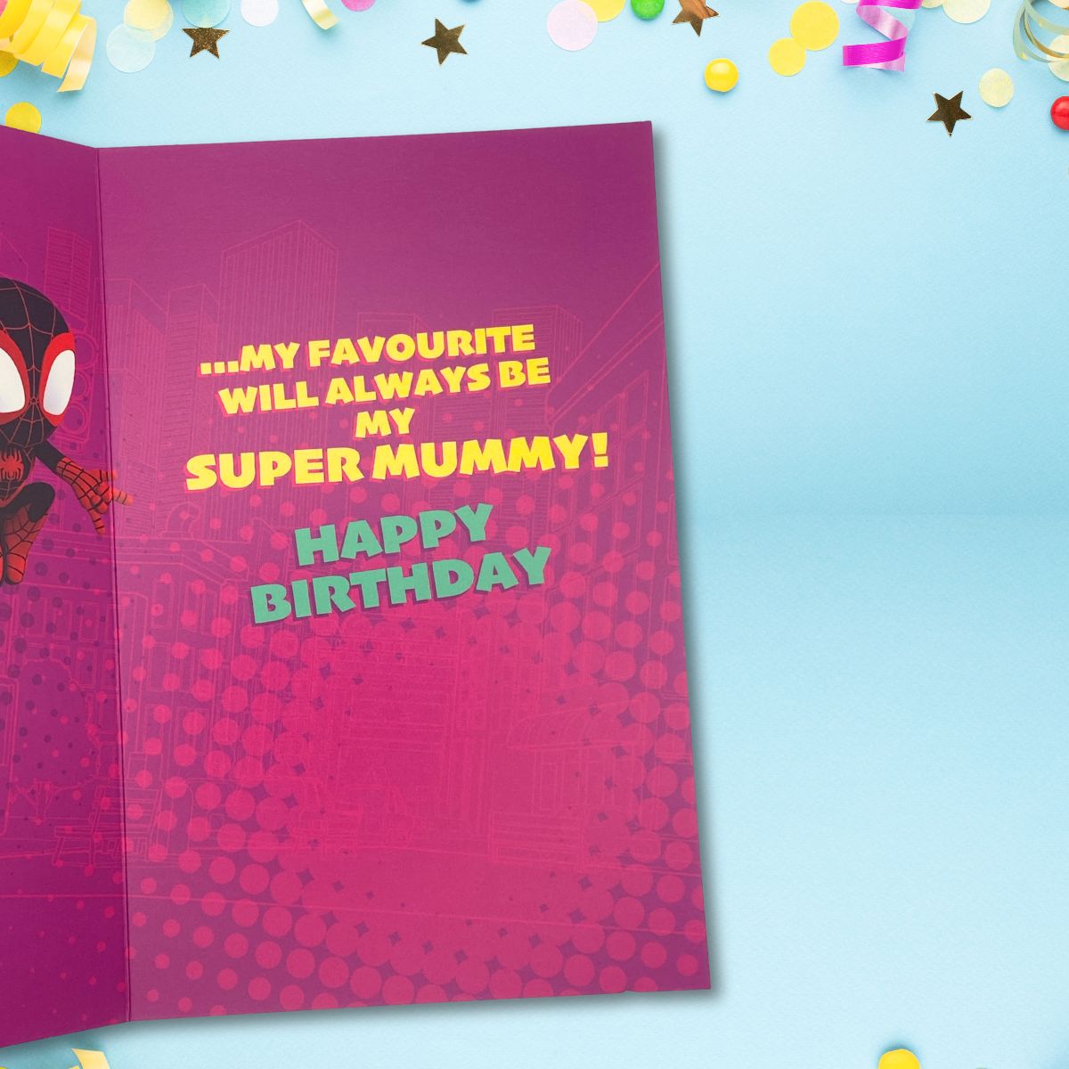Fabulous Mummy Birthday card from the Marvel Spiderman collection with gloss finish and vibrant colour inside.