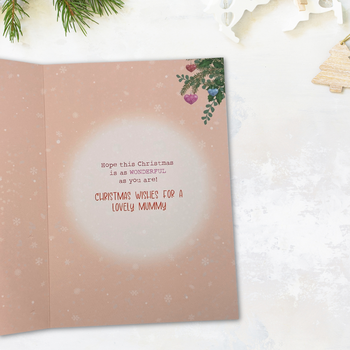 Gorgeous Christmas card for Mummy, with gold foil details and pretty colour printed inside.