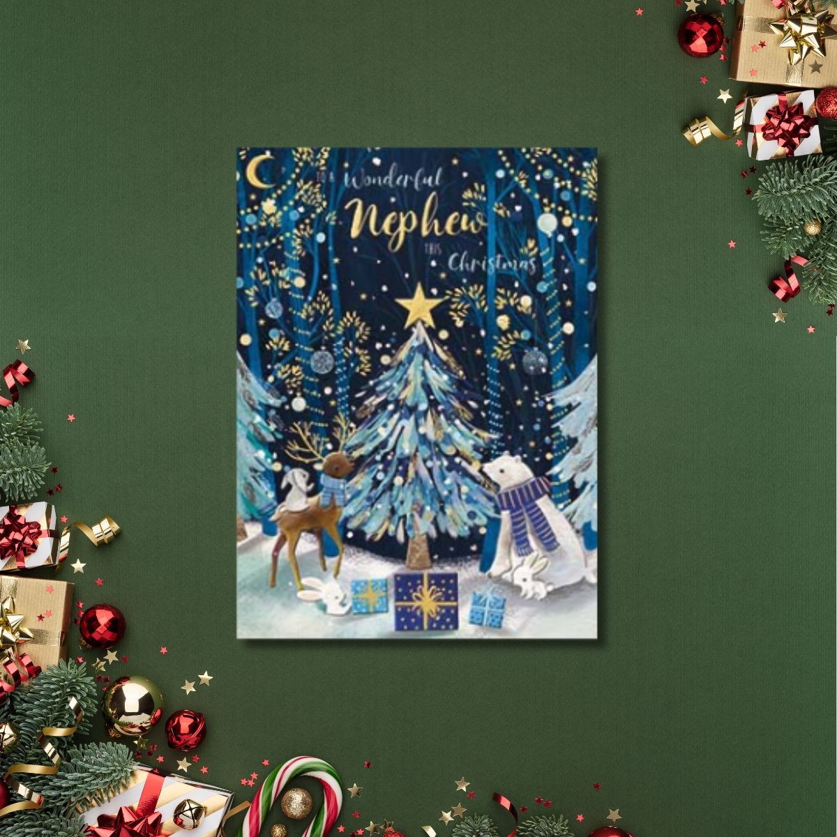 Fabulous Christmas design featuring woodland animals around the Christmas tree.