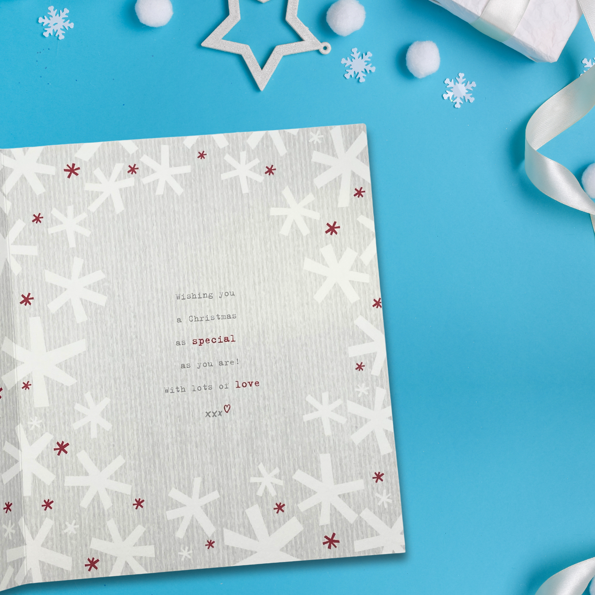 Stunning full colour Niece Christmas card from the Boofle Bear Collection complete with silver foil details and colour printed inside.