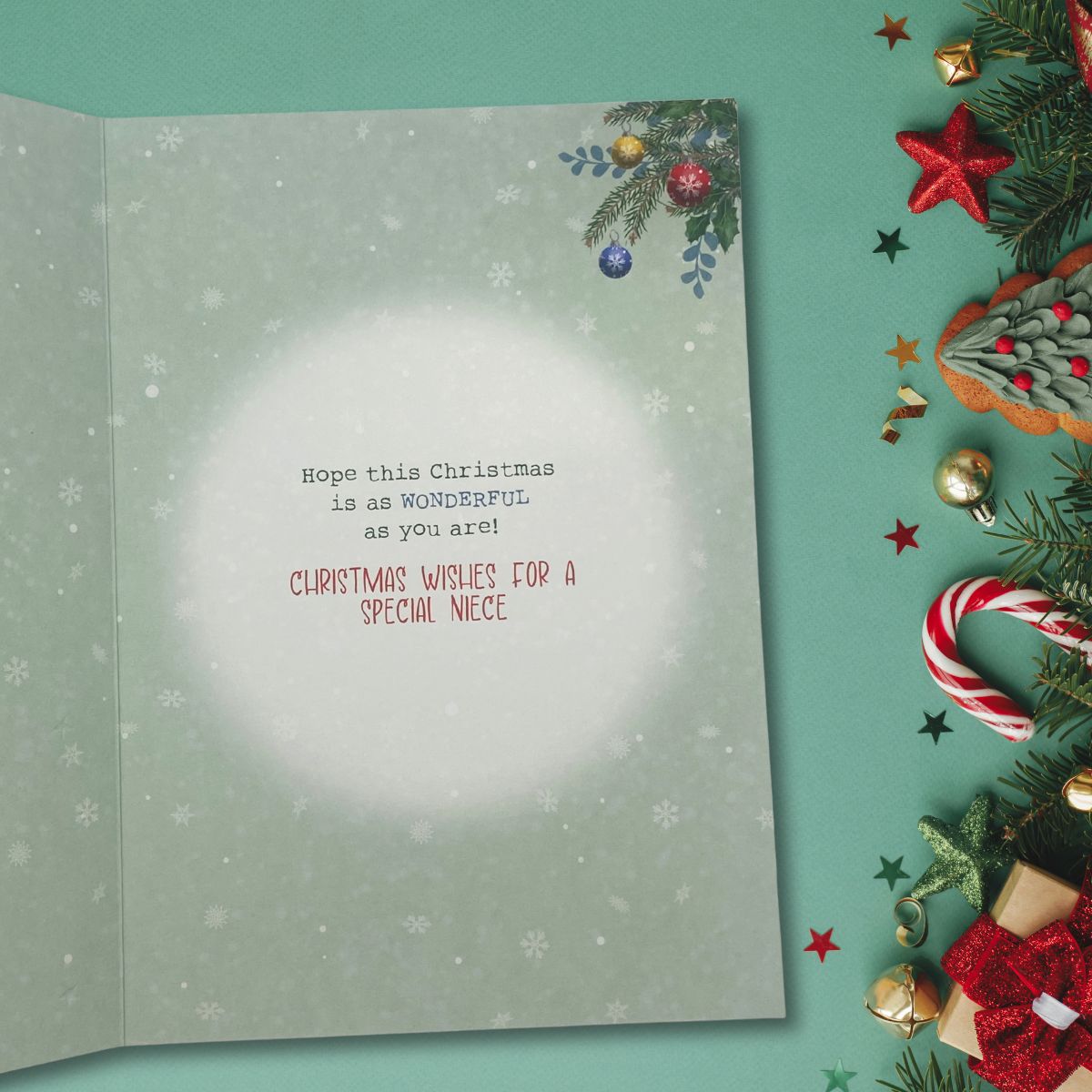 Fabulous Christmas card for a Niece, with gold foil details and pretty colour printed inside.