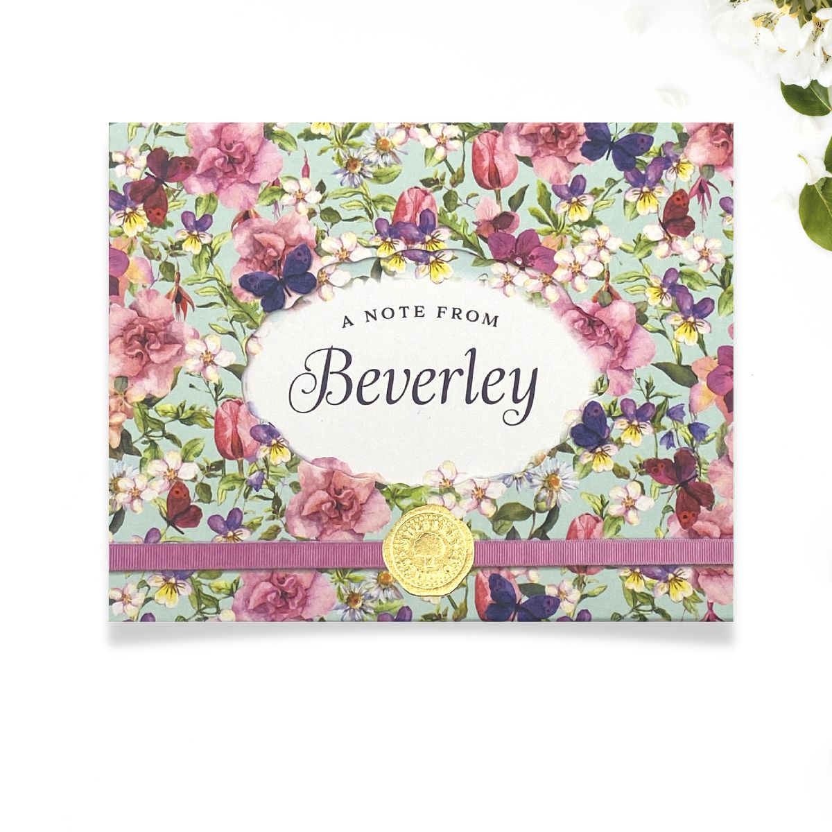 Fabulous floral Notelets by Rosalind & Hebe. 8 Personalised Floral notelets with envelopes delivered in pretty floral case. Blank inside for your own message.