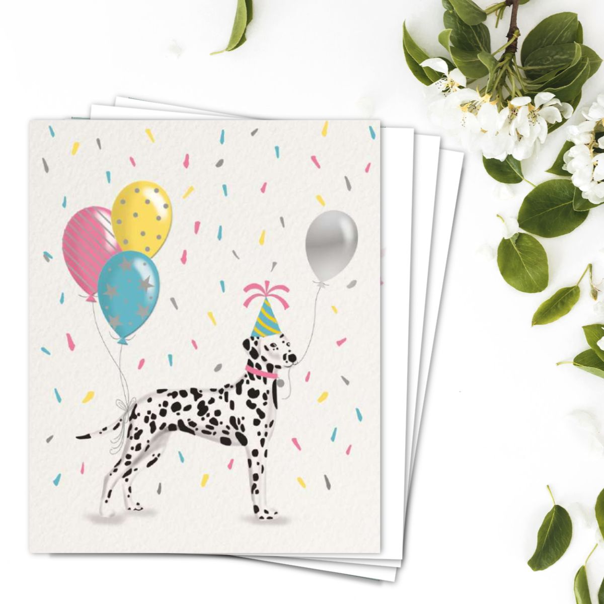 Beautiful pack of Notelet cards featuring a dalmation and balloon.