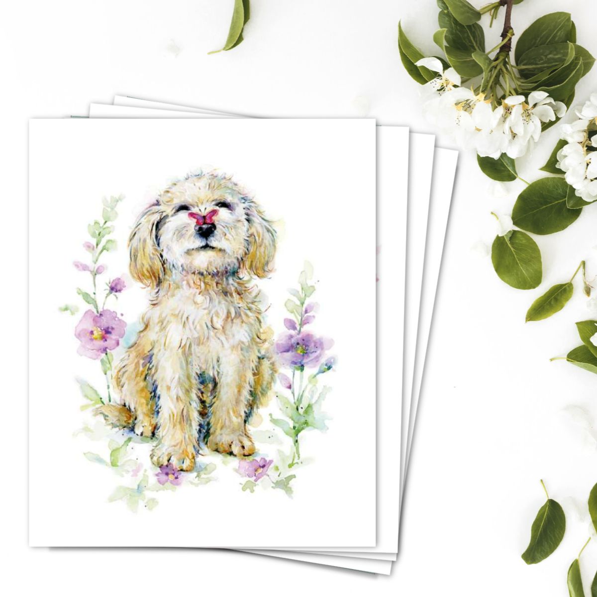 Beautiful pack of Notelet cards featuring a puppy with a butterfly on its nose.