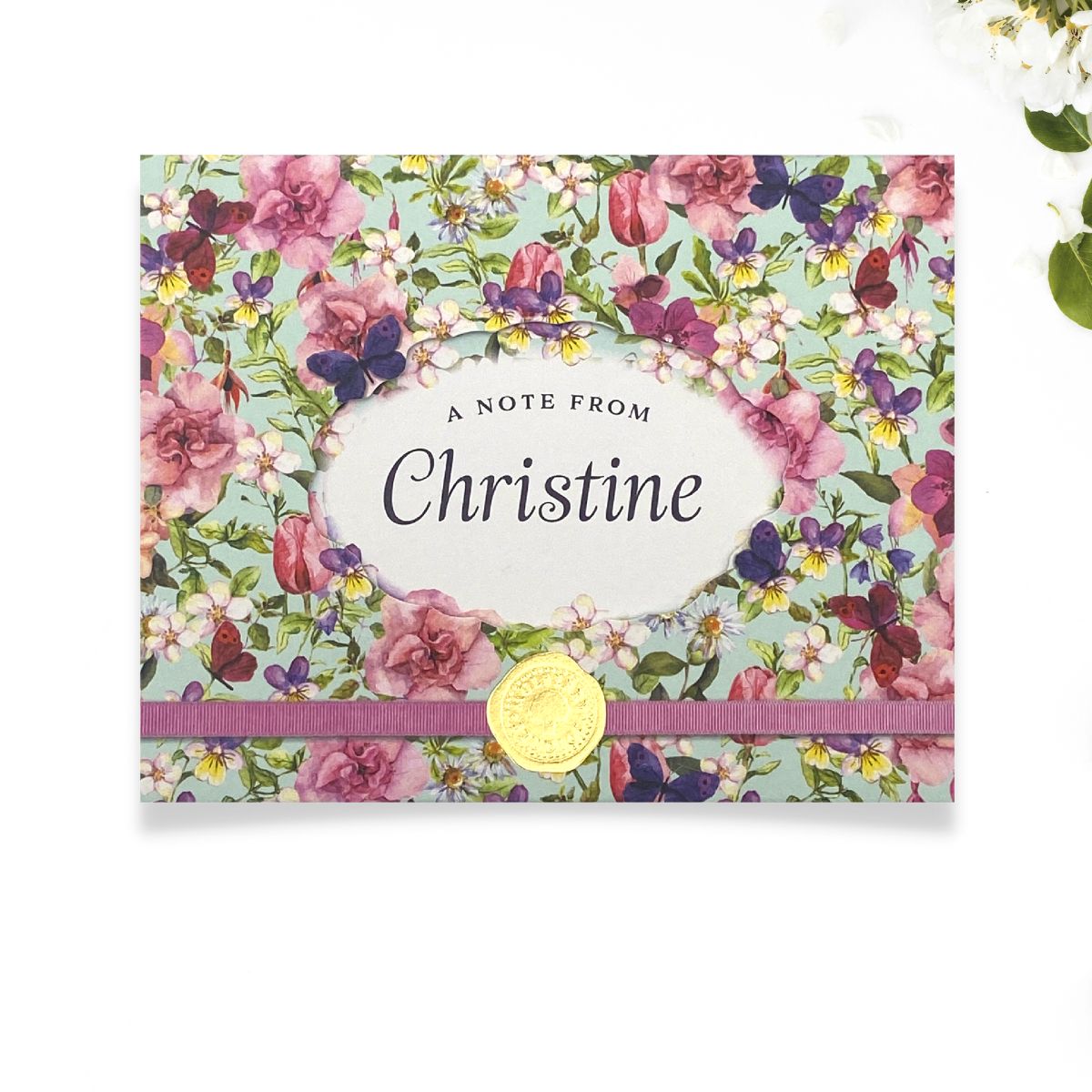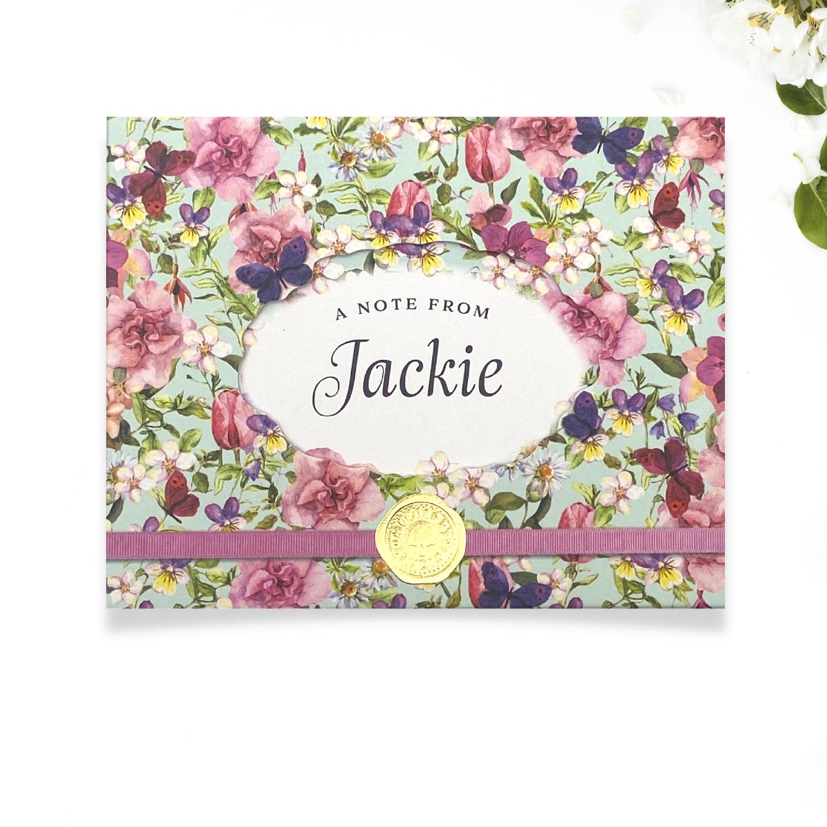 Fabulous floral Notelets by Rosalind & Hebe. 8 Personalised Floral notelets with envelopes delivered in pretty floral case. Blank inside for your own message.