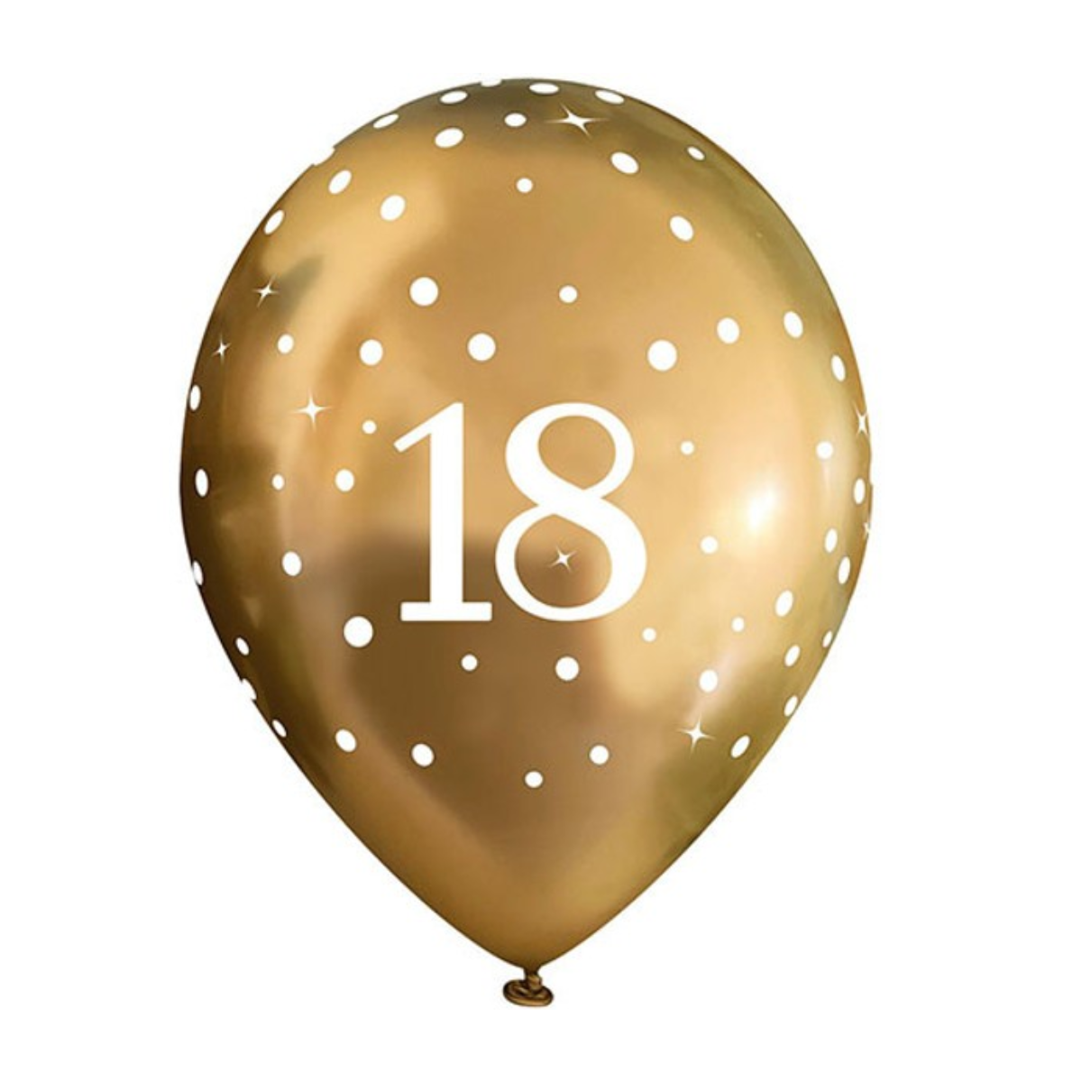 Oaktree Balloons - 6 x 11" 18th Gold Fizz Happy Birthday Latex