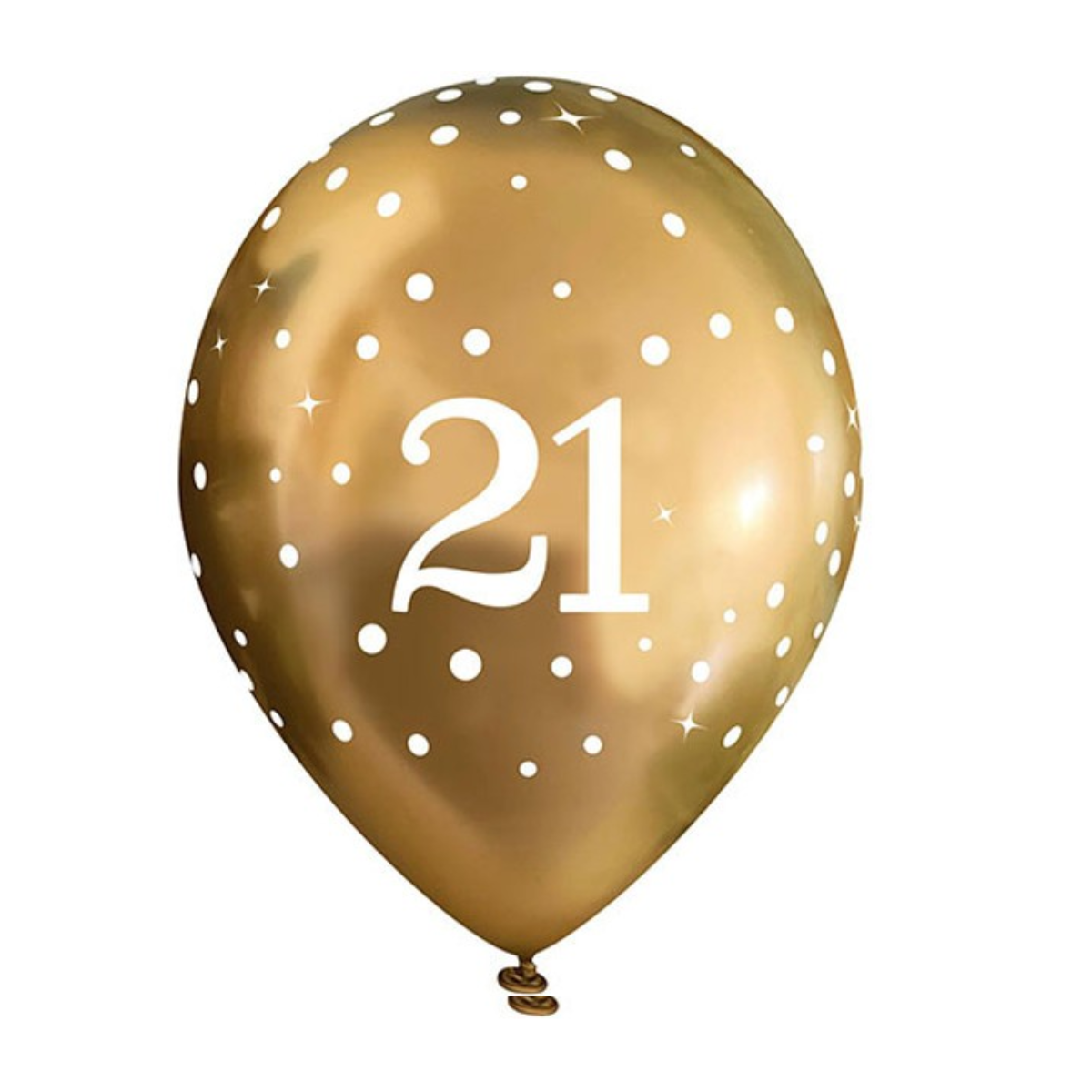 Oaktree Balloons - 6 x 11" 21st Gold Fizz Happy Birthday Latex