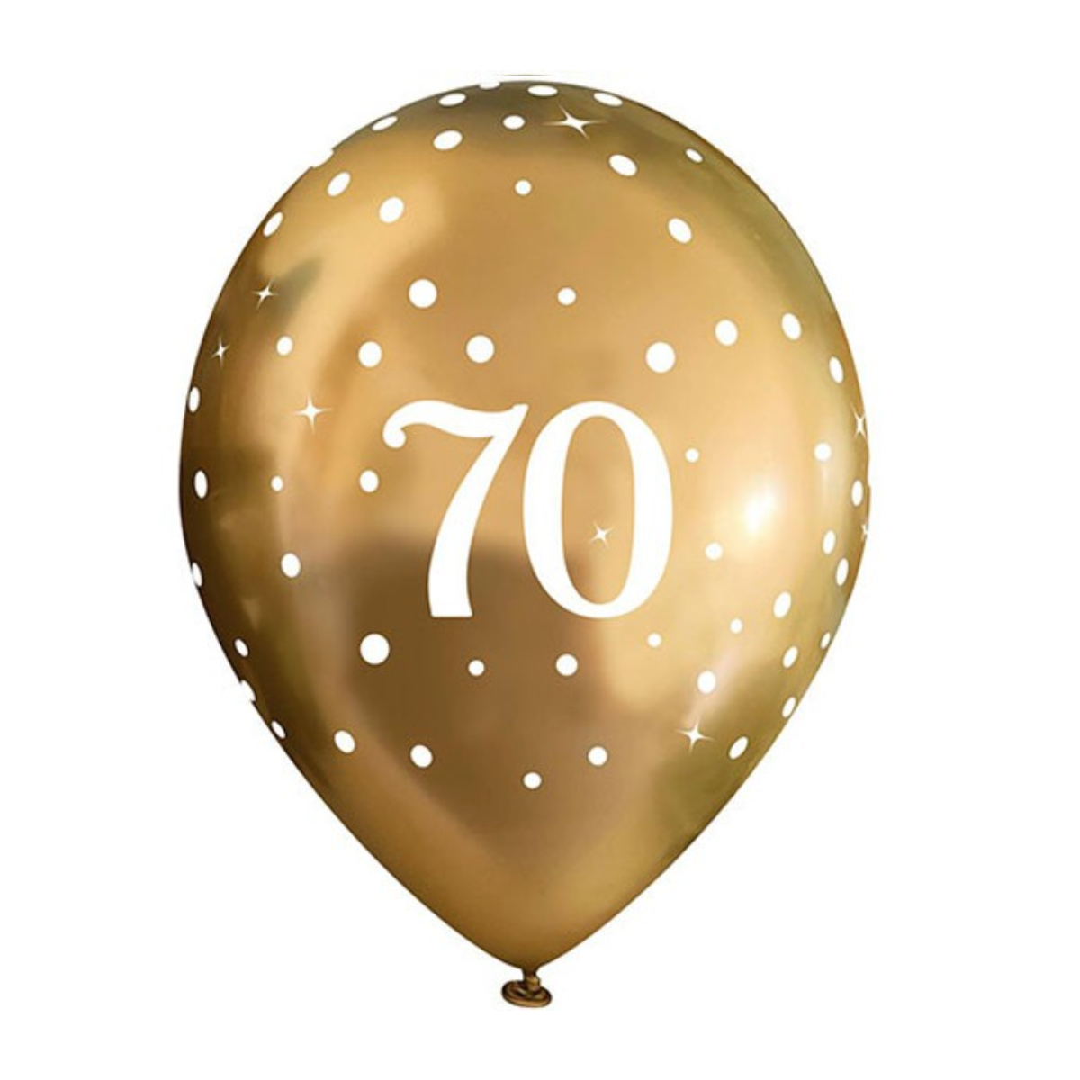 Oaktree Balloons - 6 x 11" 70th Gold Fizz Happy Birthday Latex