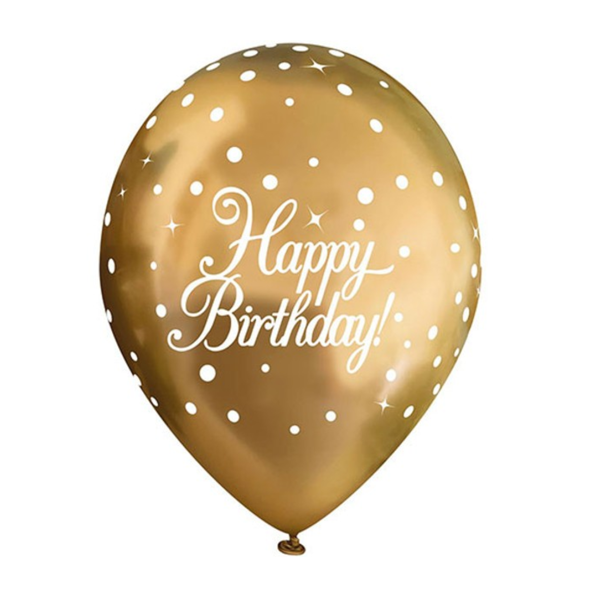Oaktree Balloons - 6 x 11" Gold Fizz Happy Birthday Latex