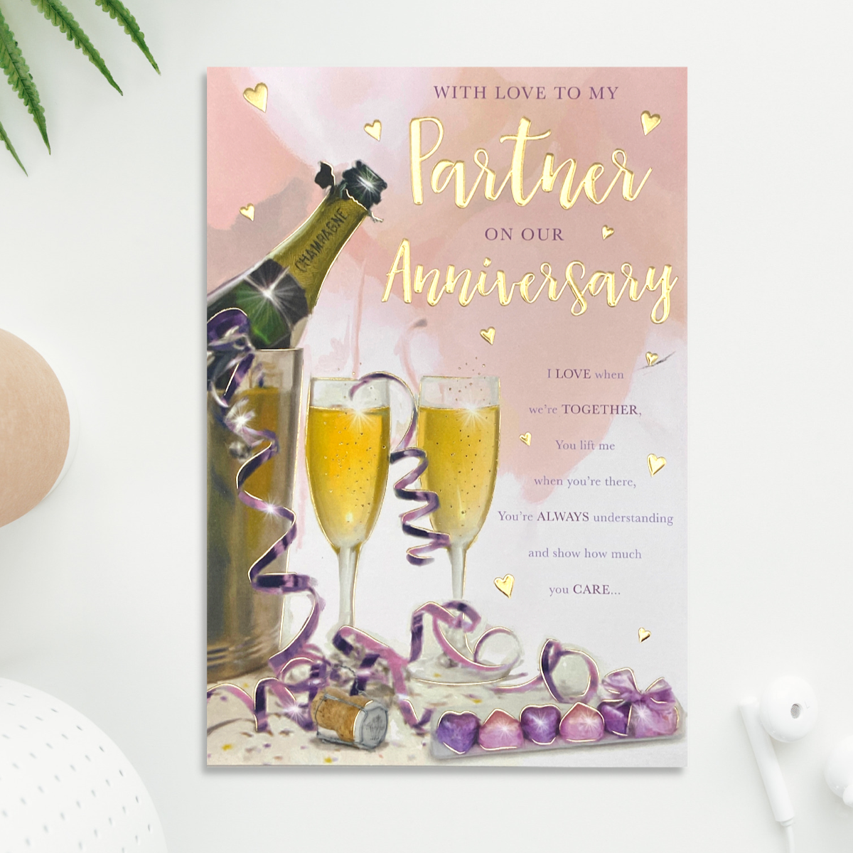 Fantastic Partner Anniversary card with gold foil details and beautiful colour printed insert.