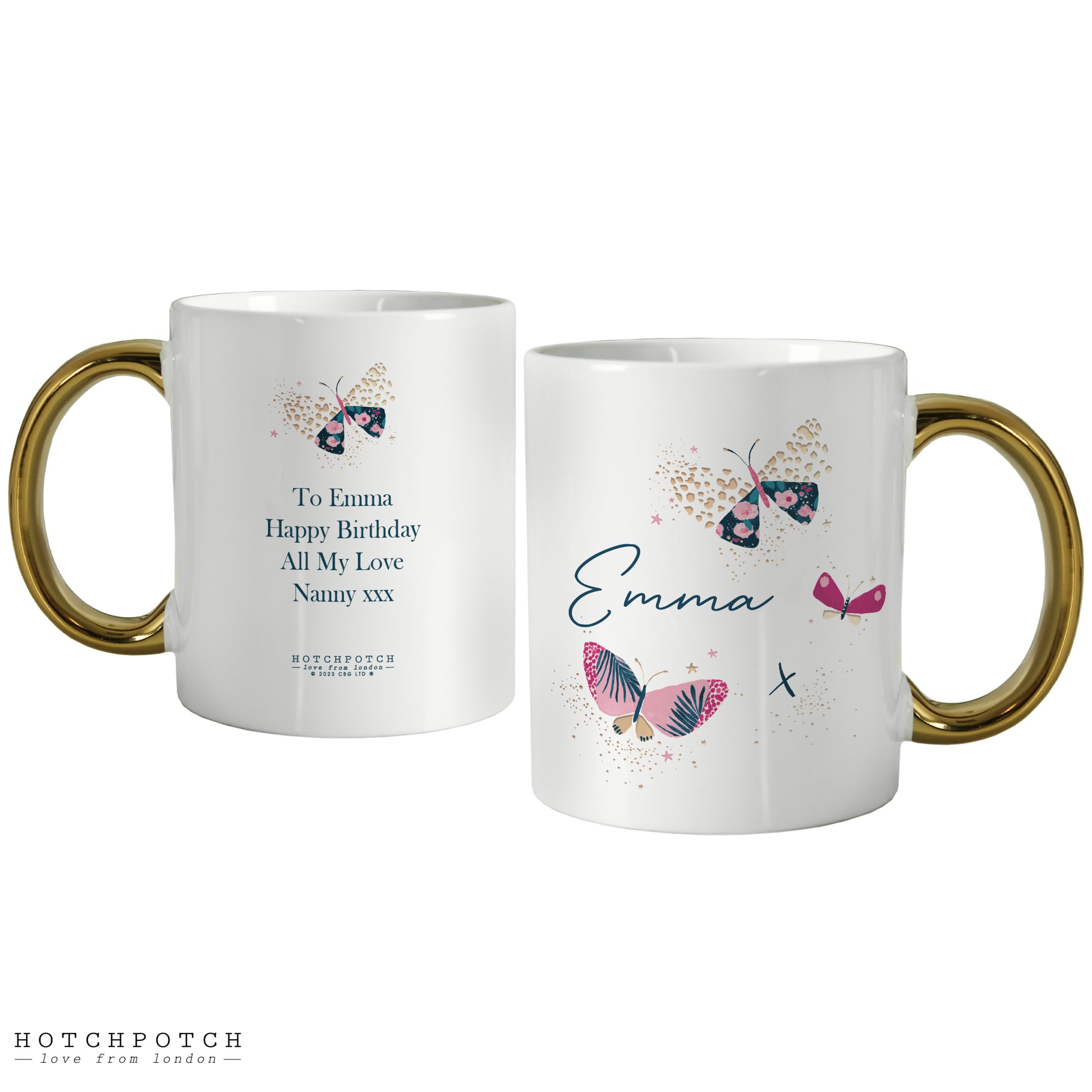Personalised Mothers Day - Butterfly Gold Handle Mug
