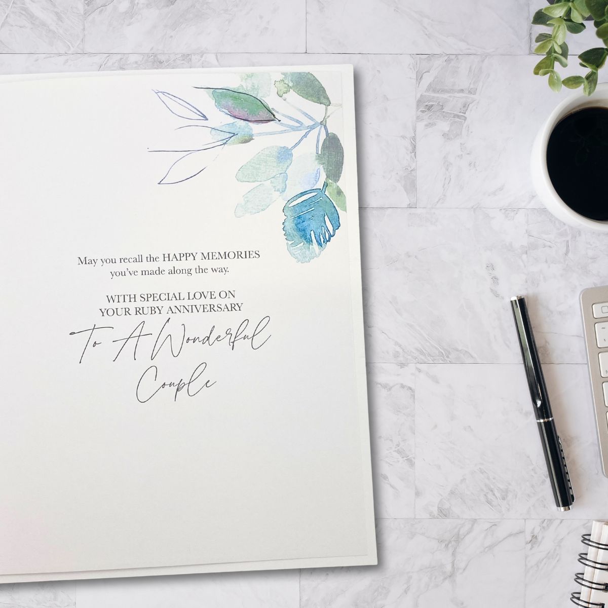 Gorgeous Ruby bWedding Anniversary card from the Heritage collection with red foil details and beautiful colour printed insert.
