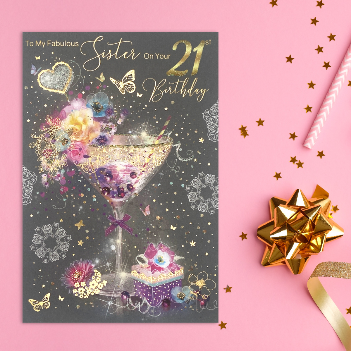 Sister 21st Birthday Card - Grace Cocktail & Gift