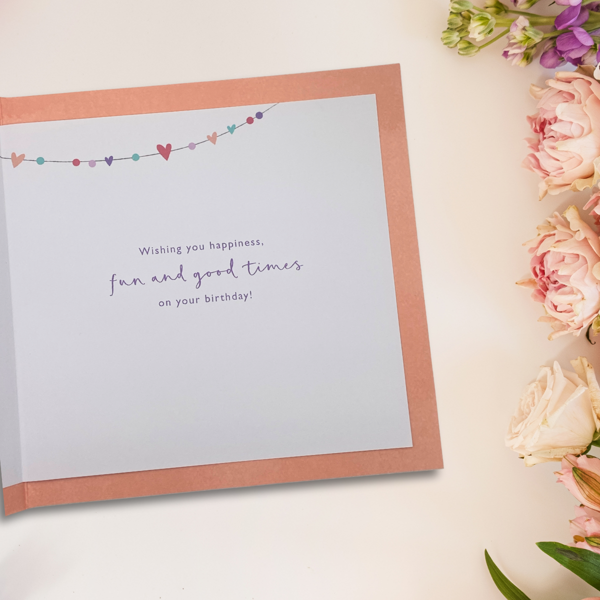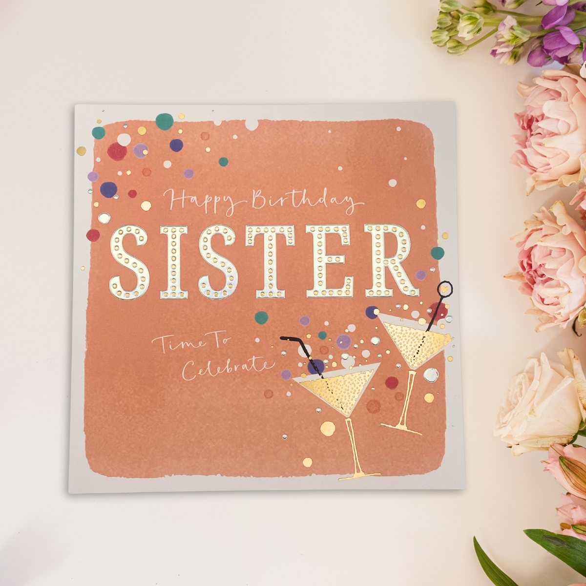 Fabulous full colour Sister Birthday large greeting card complete with gold foil details and full colour printed greeting inside.