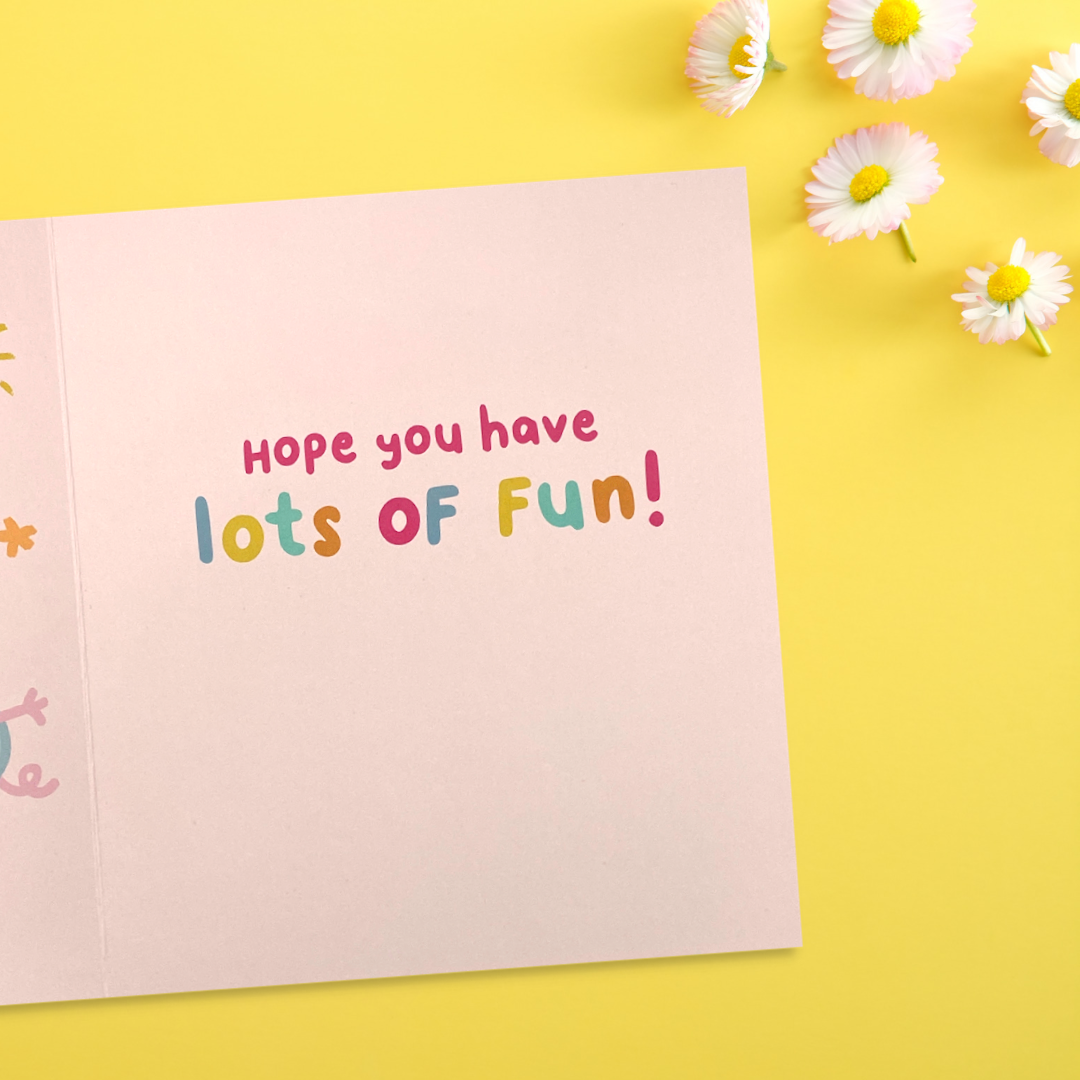 Fantastic Sister birthday card from the Peppa Pig collection complete with vibrant colour and gloss finish. With cerise foiling accents and colour printed inside.