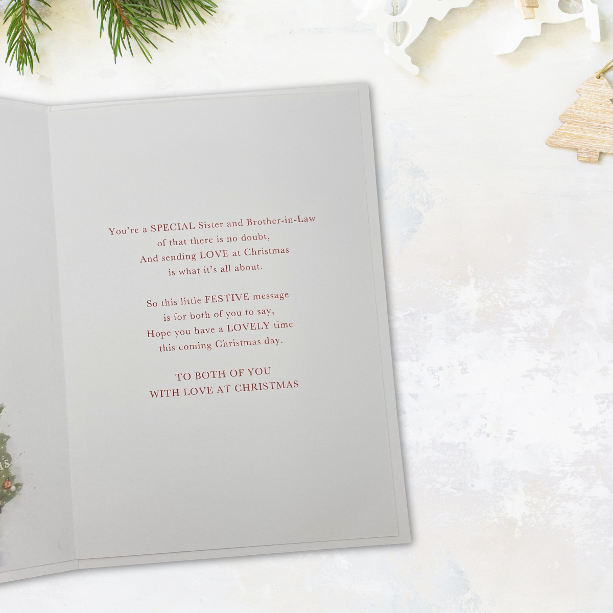 Fabulous full colour Sister & Brother-In-Law Christmas card from the Heritage collection. With gold foil accents and colour printed insert.