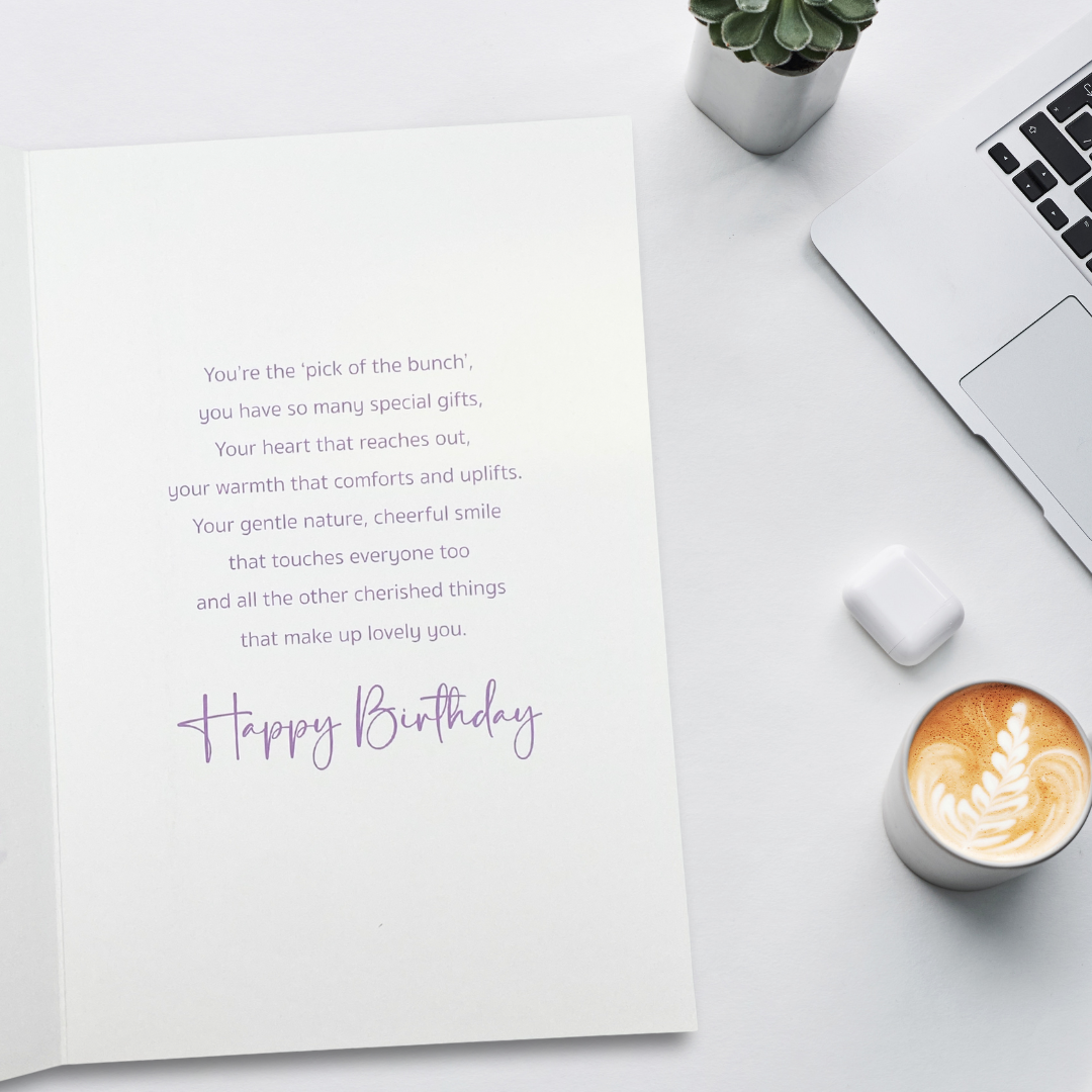 Stunning full colour Sister-in-Law birthday card from the Grace collection complete with added gold foil detail. Printed insert with colour image inside.