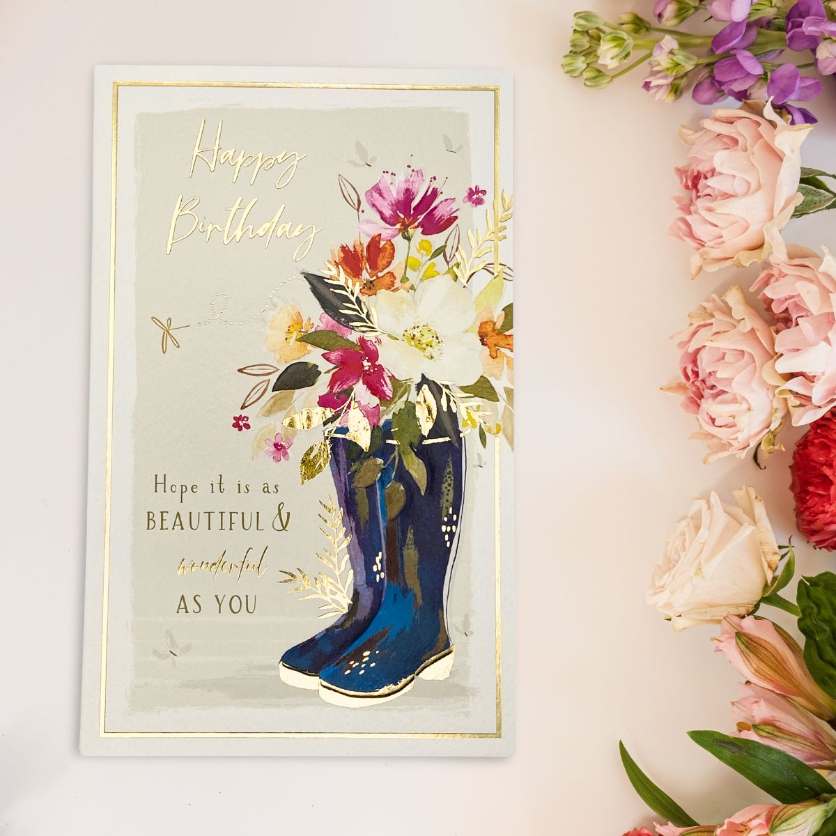 A fantastic birthday card from the Skylight collection. Finished with rose gold foil details with colour printed insert and verse.