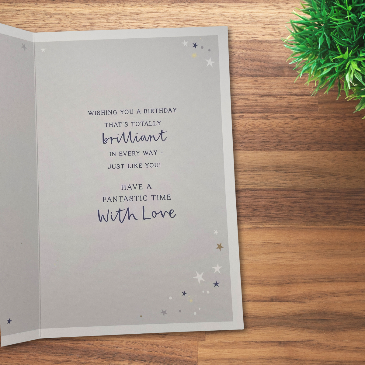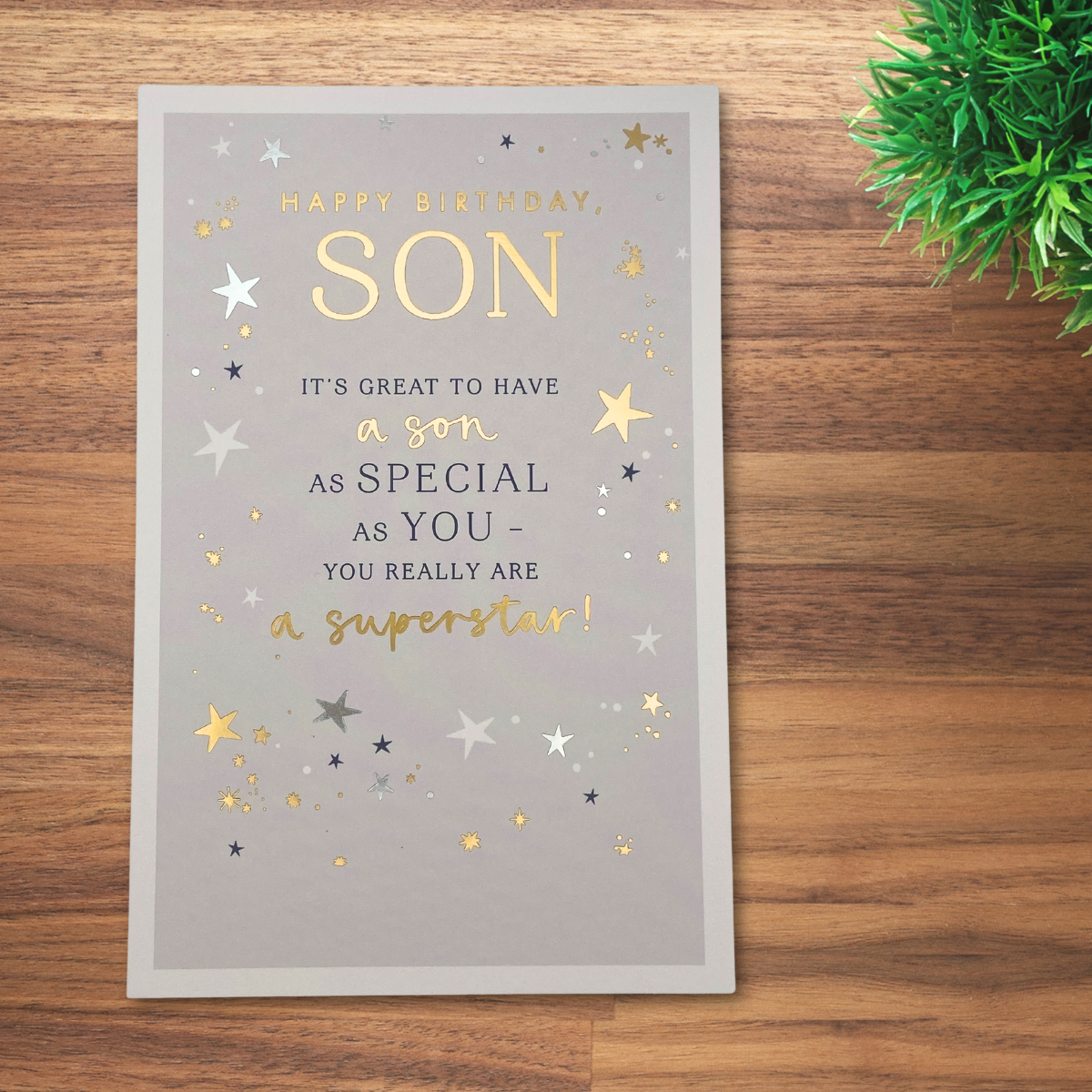 Fantastic full colour Son Birthday card with gold & silver foil accents and colour print inside.