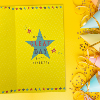 Stunning full colour Son Birthday card from the Giddy-Up collection with gold foiled details and colour insert.