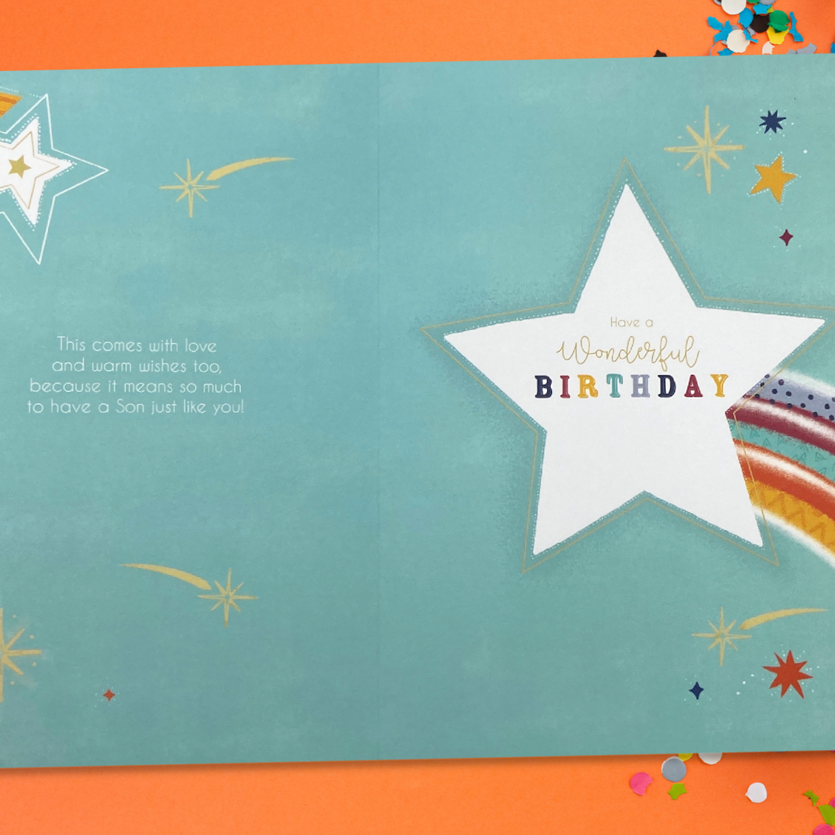 Fabulous full colour Son textured birthday card from the Pavillion collection with gold foil details and colour printed insert.