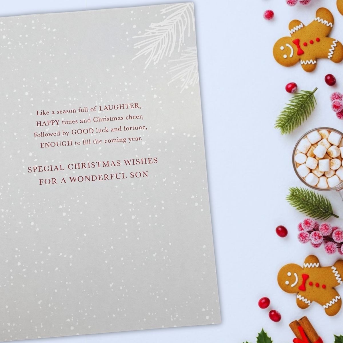 Fabulous Christmas card for Son, with gold foil details and colour printed inside.
