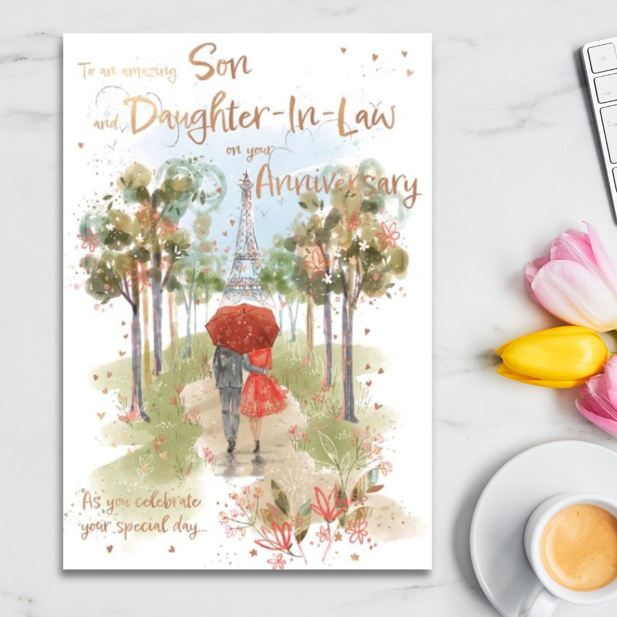 Son & Daughter-In-Law Wedding Anniversary Card - Awash With Colour