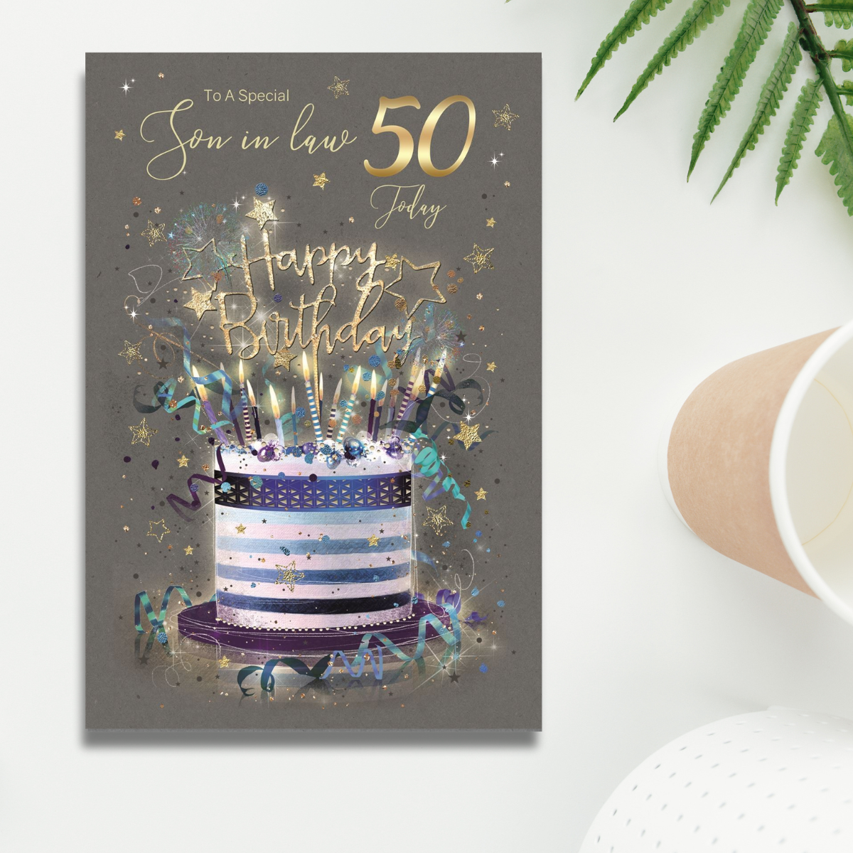 Son-In-Law 50th Birthday Card - Grayson Cake & Candles