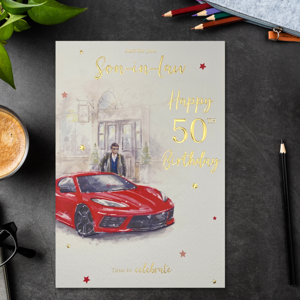 Son-In-Law 50th Birthday Card - Red Sports Car