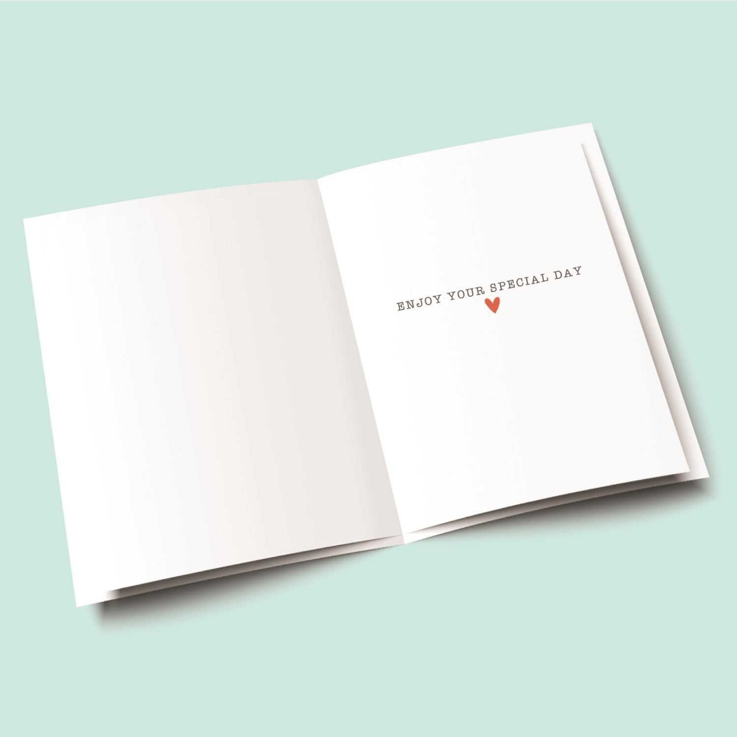 This bright and modern handmade design is complete with brightly coloured decorated envelope and gold foil details.