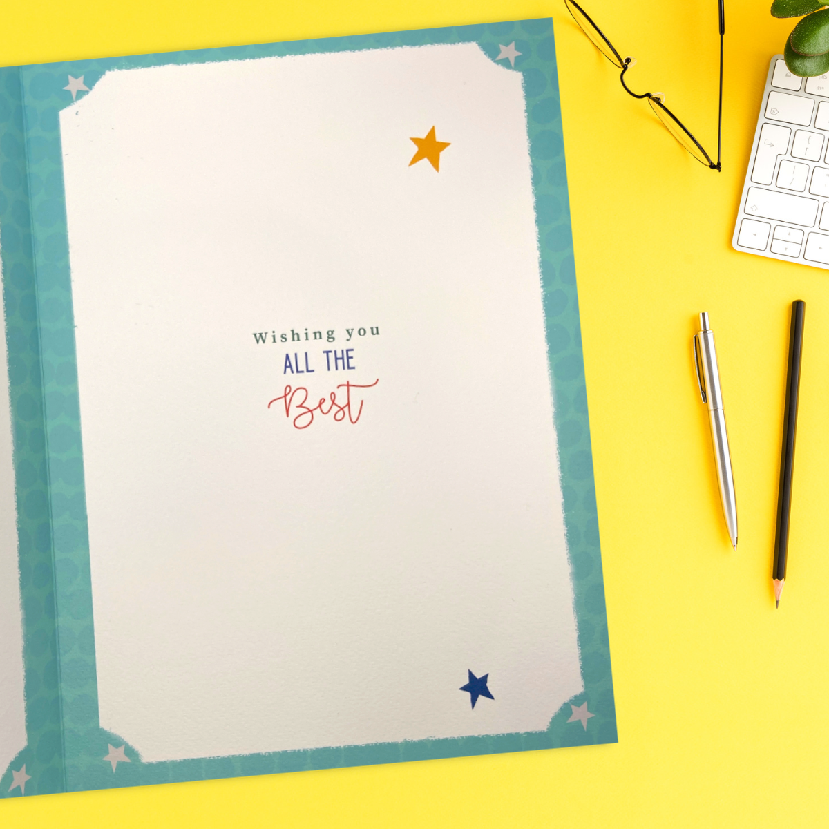 Fabulous full colour textured Sorry You're Leaving card from the Pavillion collection with silver foiling details and colour printed inside.