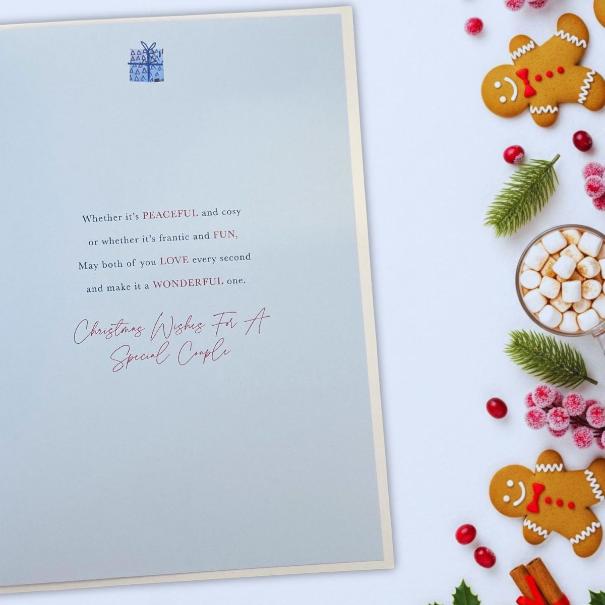 Gorgeous full colour Special Couple Christmas card with gold foil accents and colour printed insert.