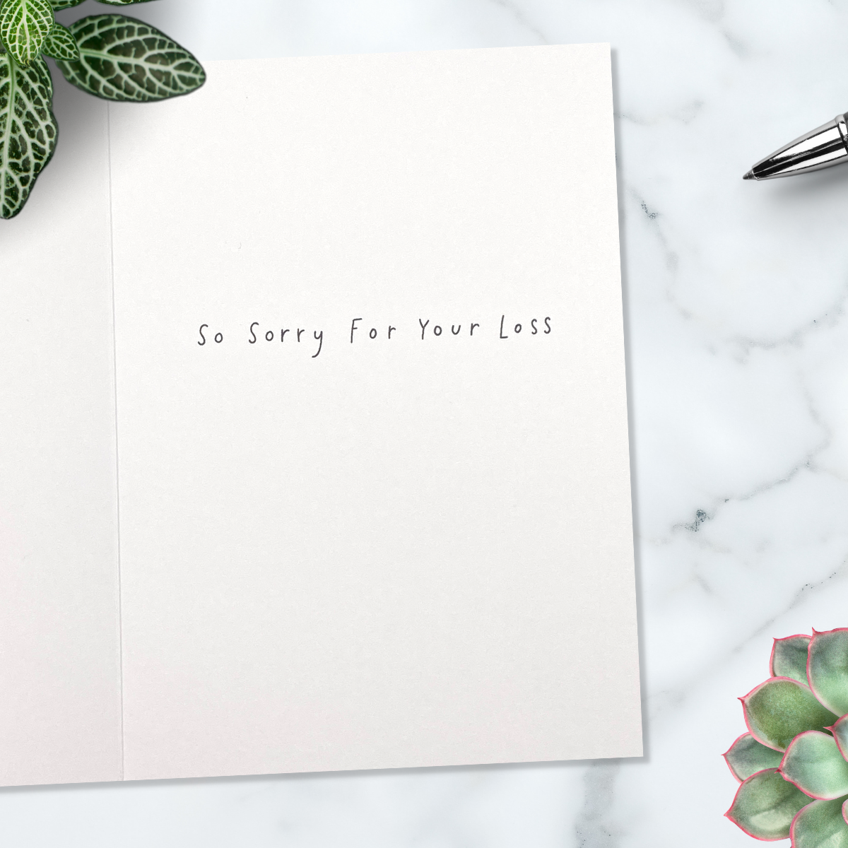 Sympathy card with rainbow, verse and silver foil details.