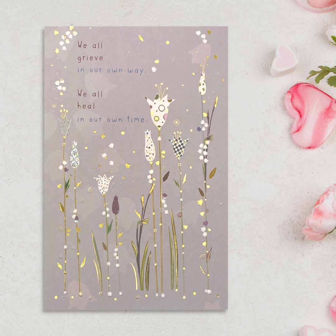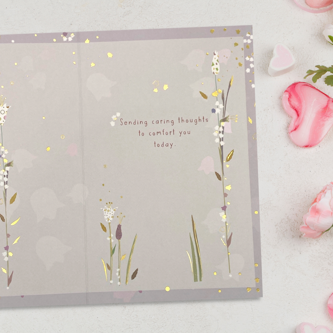 Elegant Bereavement card from the Turnowsky collection with gold foiled accents. Finished with the prettiest colour printed inside.