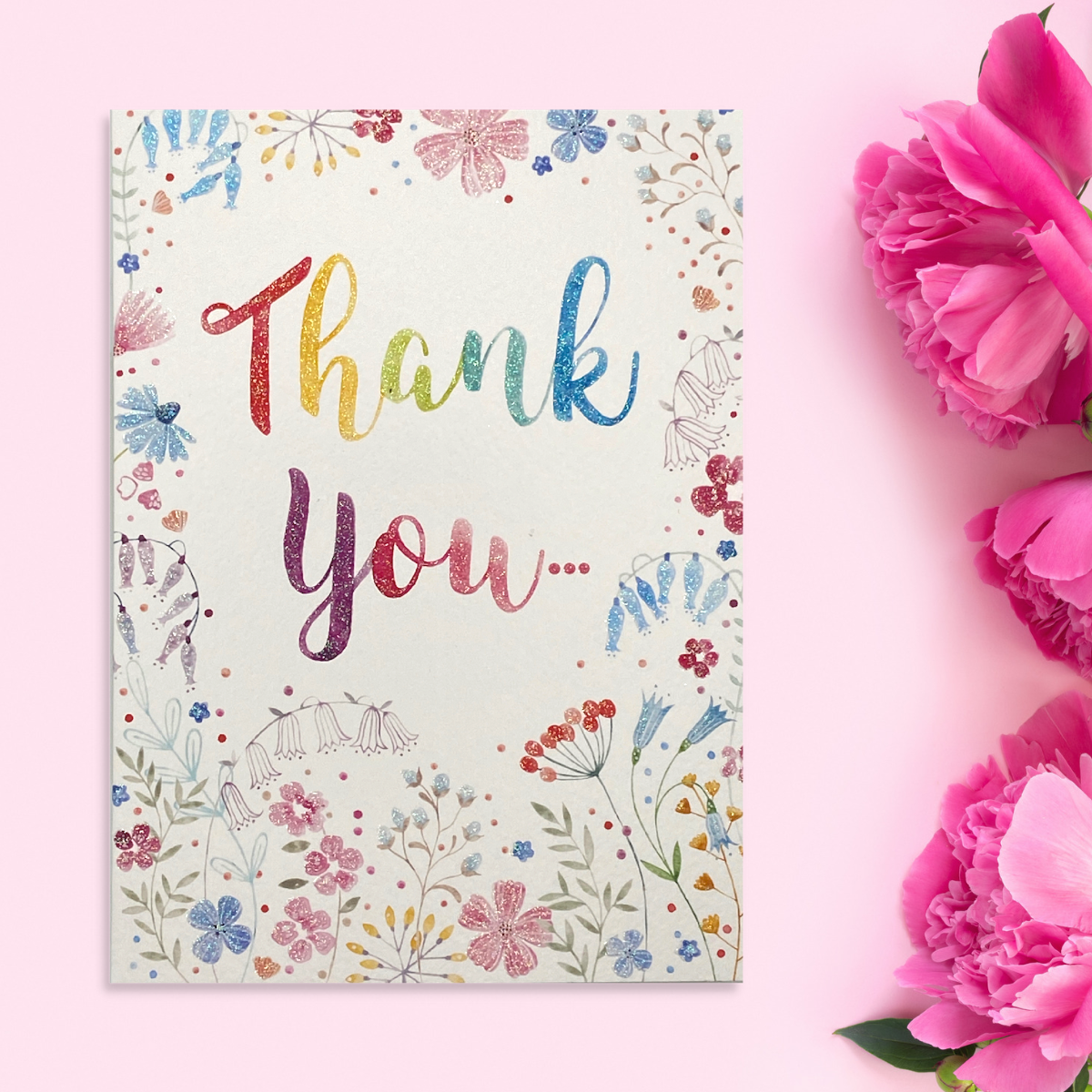 Thank You Card - Just For You Sparkling Flowers