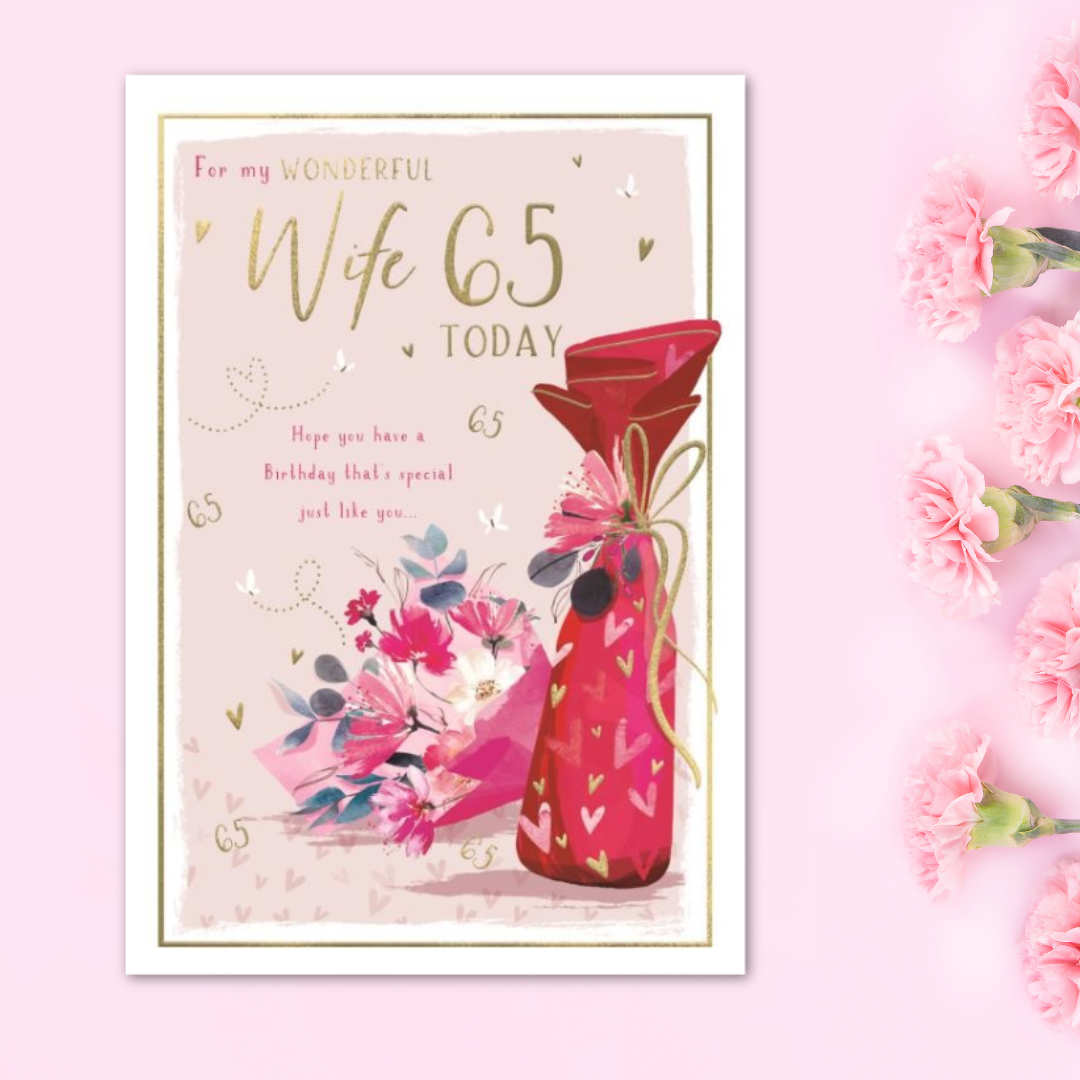 Wife 65th Birthday Card - Skylight Floral Bottle Gift