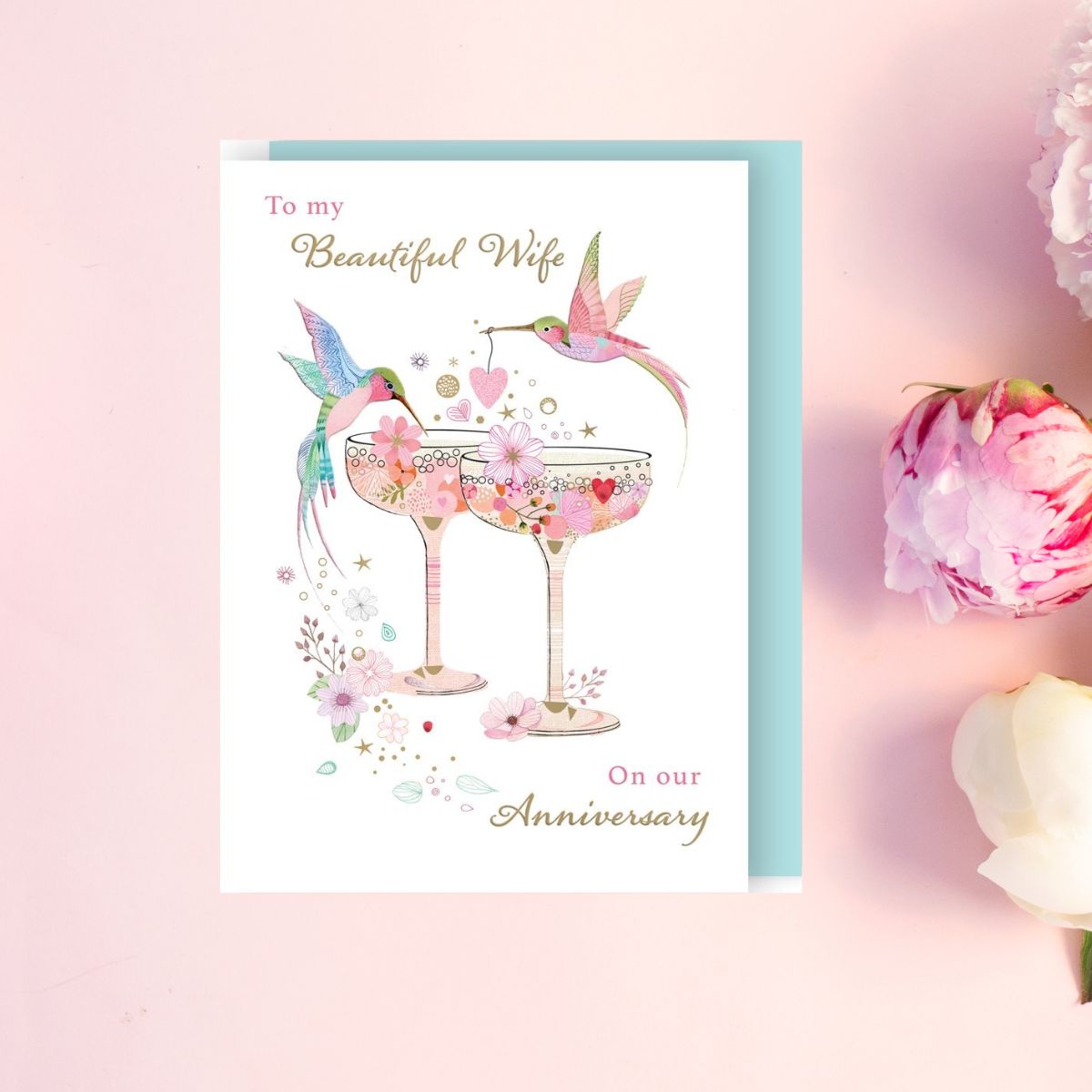 Fantastic Wife Anniversary card with stand out gold foil details.