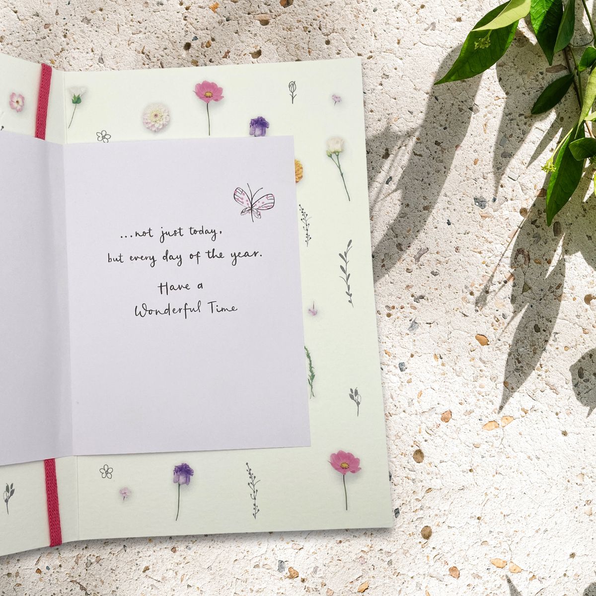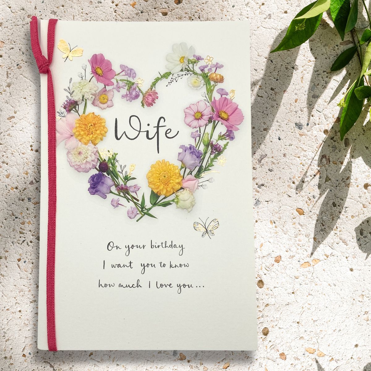 Gorgeous Wife Birthday design with gold foil details and pink ribbon too! Finished with colour printed insert.