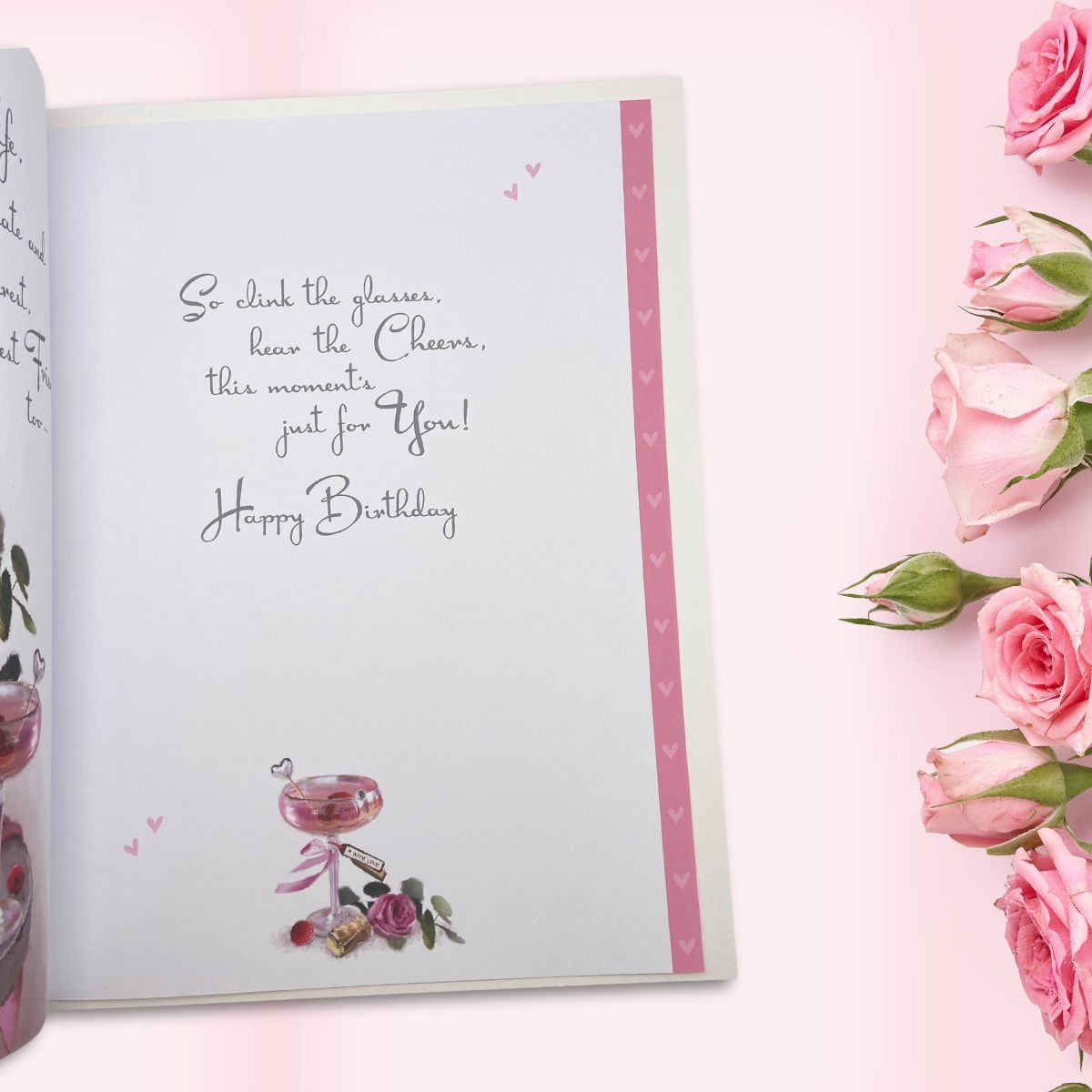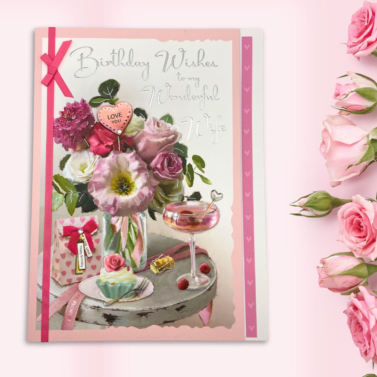 Gorgeous Wife Birthday large design from the Velvet collection with die-cut edge, silver foil details and added gems. Finished with colour printed insert and heartfelt sentiments.